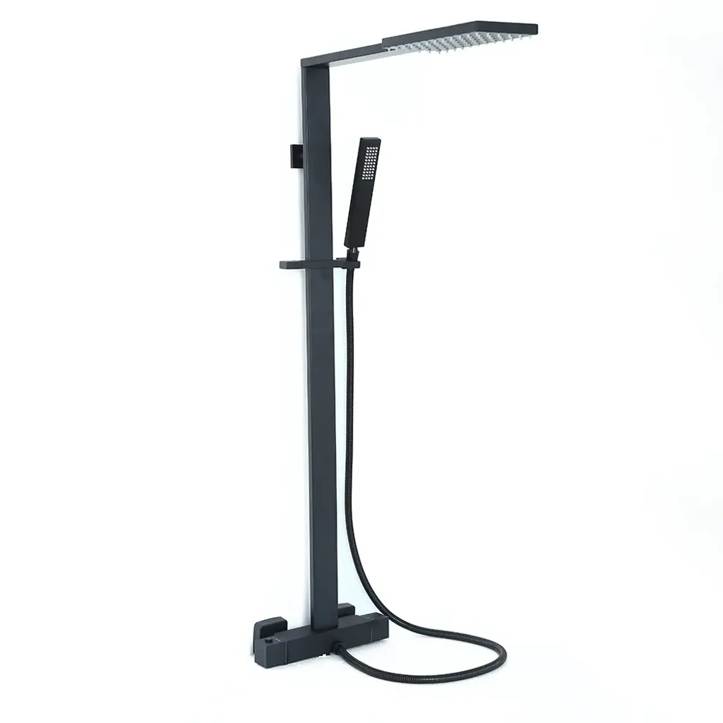 Exposed Thermostatic Shower Fixture With Rain Shower Head And Hand Shower Matte Black