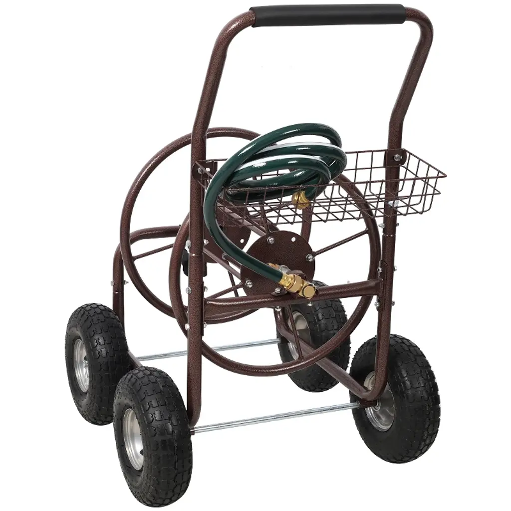 Expressions Metal Hose Reel Cart With Wheels - Heavy Duty Hose Caddie - 250 Ft Hose Capacity