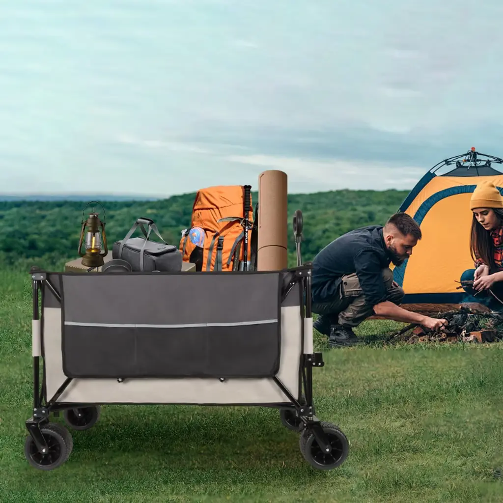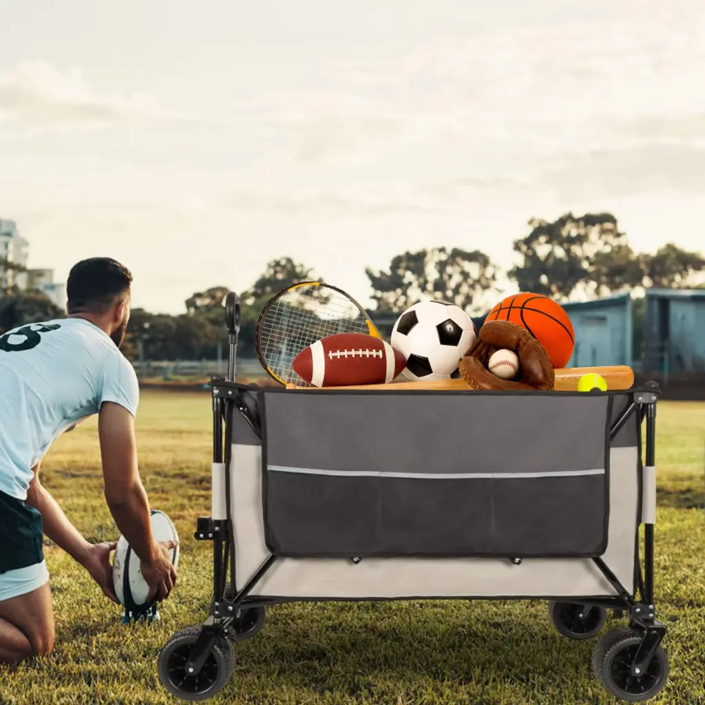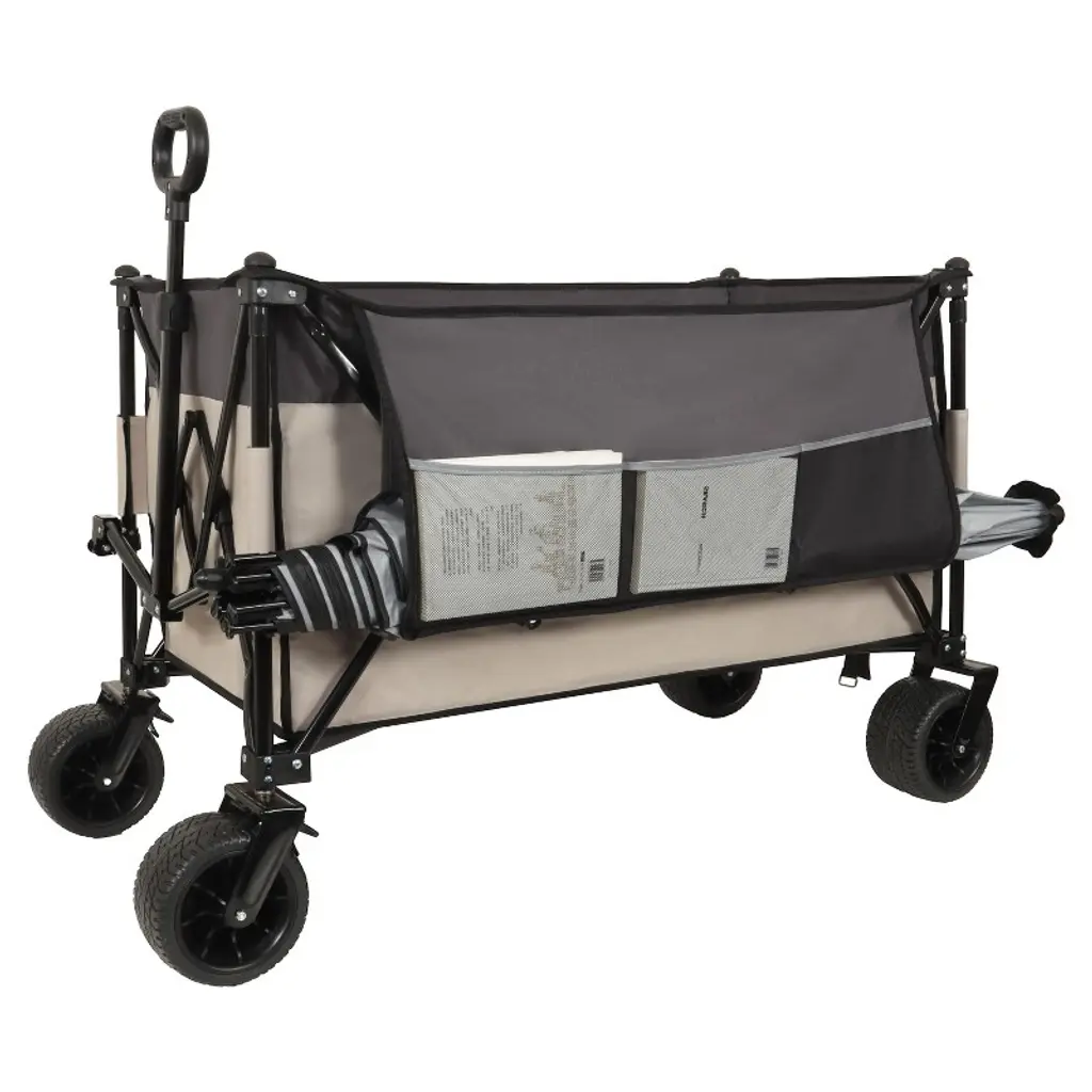 Extra Large 300l Tall Heavy-duty Folding Wagon Cart W/ 480lbs Capacity ̈C All-terrain Wheels, Side Pockets, Brakes & Drink Holders For Camping, Beach