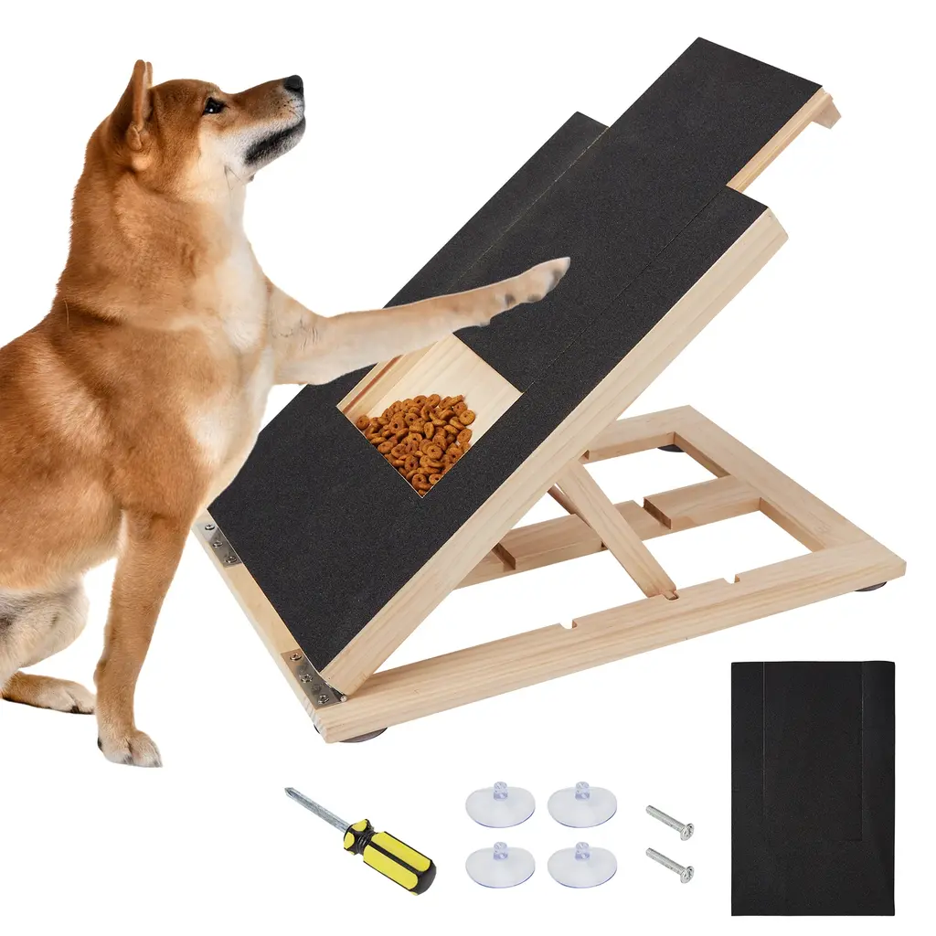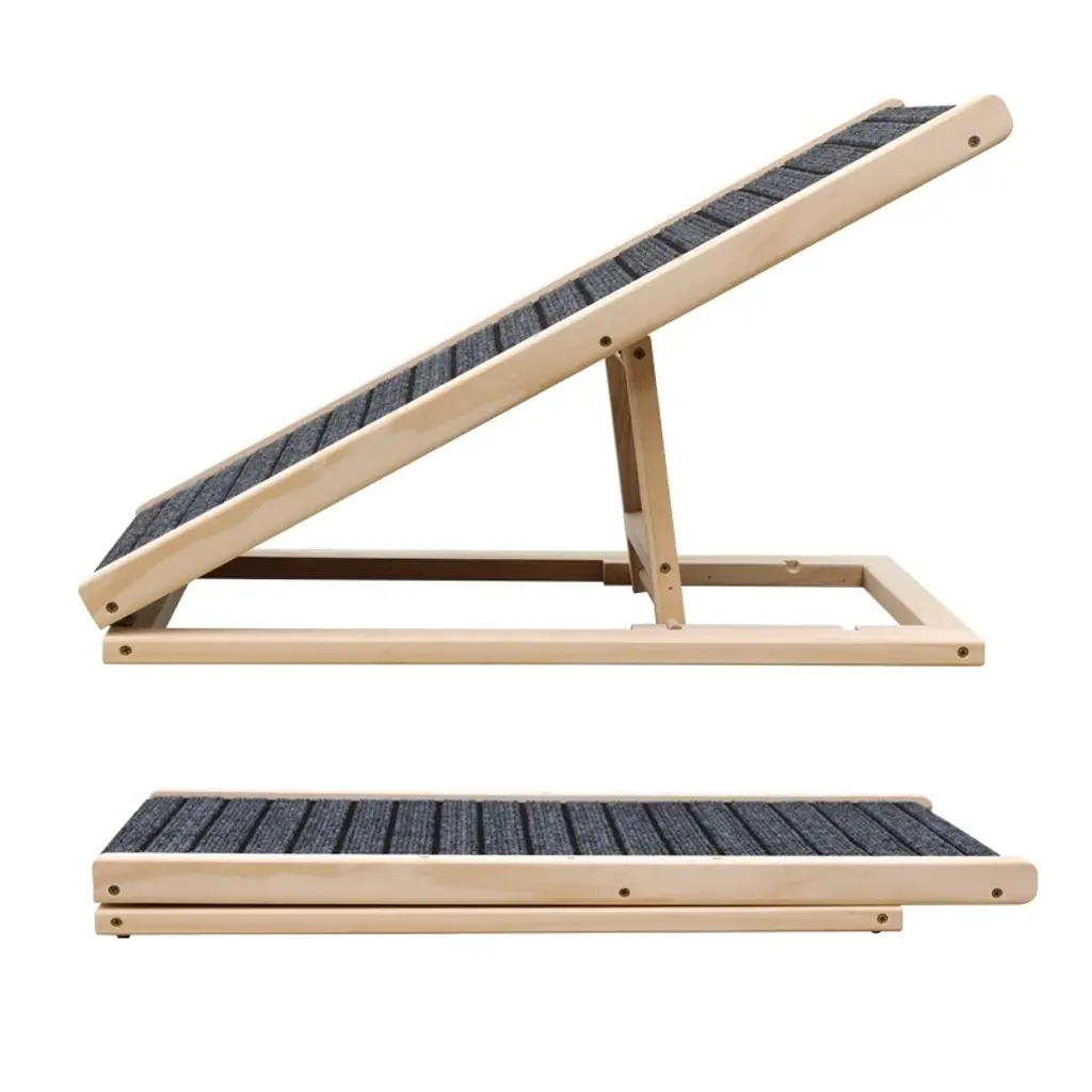 Extra Wide Excellent Traction Pet Ramp For Small Dogs To Get On Couch Car, Non-Slip Rubber Surface Adjustable, Foldable - White