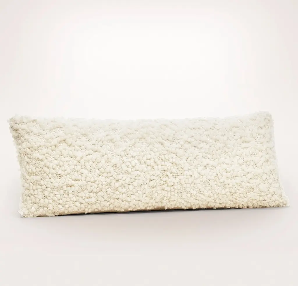 Get ready to cozy up with this textural ivory lumbar pillow. Made of soft-to-the-touch boucle fabric, our exclusive, extra-wide lumbar pillow is the perfect addition to any couch or bed in your home. This pillow comes with a zipper to access the removable insert, making cleaning a breeze.