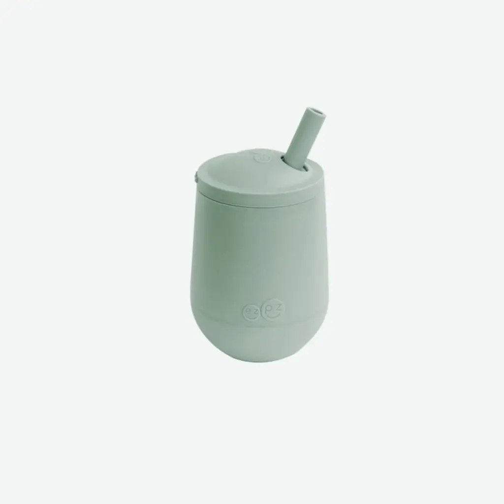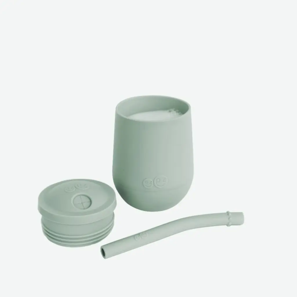 Ready to introduce your baby to solo sipping? This thoughtfully designed mini toddler cup in sage green encourages little ones to begin drinking independently. The nonslip grip lets them keep ahold of the cup, and the small capacity reduces spillage. Made of silicone that's soft on sensitive gums and brand-new teeth, the reversible straw does double duty as a beginning and advanced training straw. Once toddlers have mastered drinking with a straw, the dishwasher-safe cup can be used without its lid.