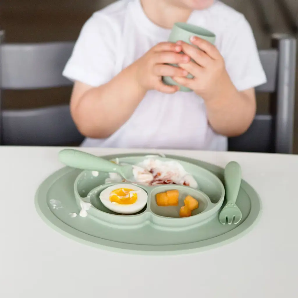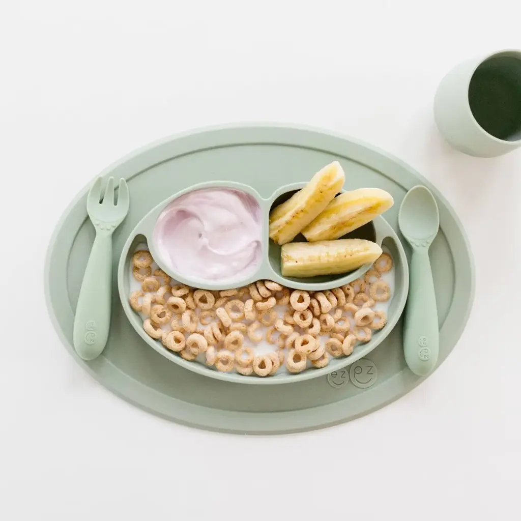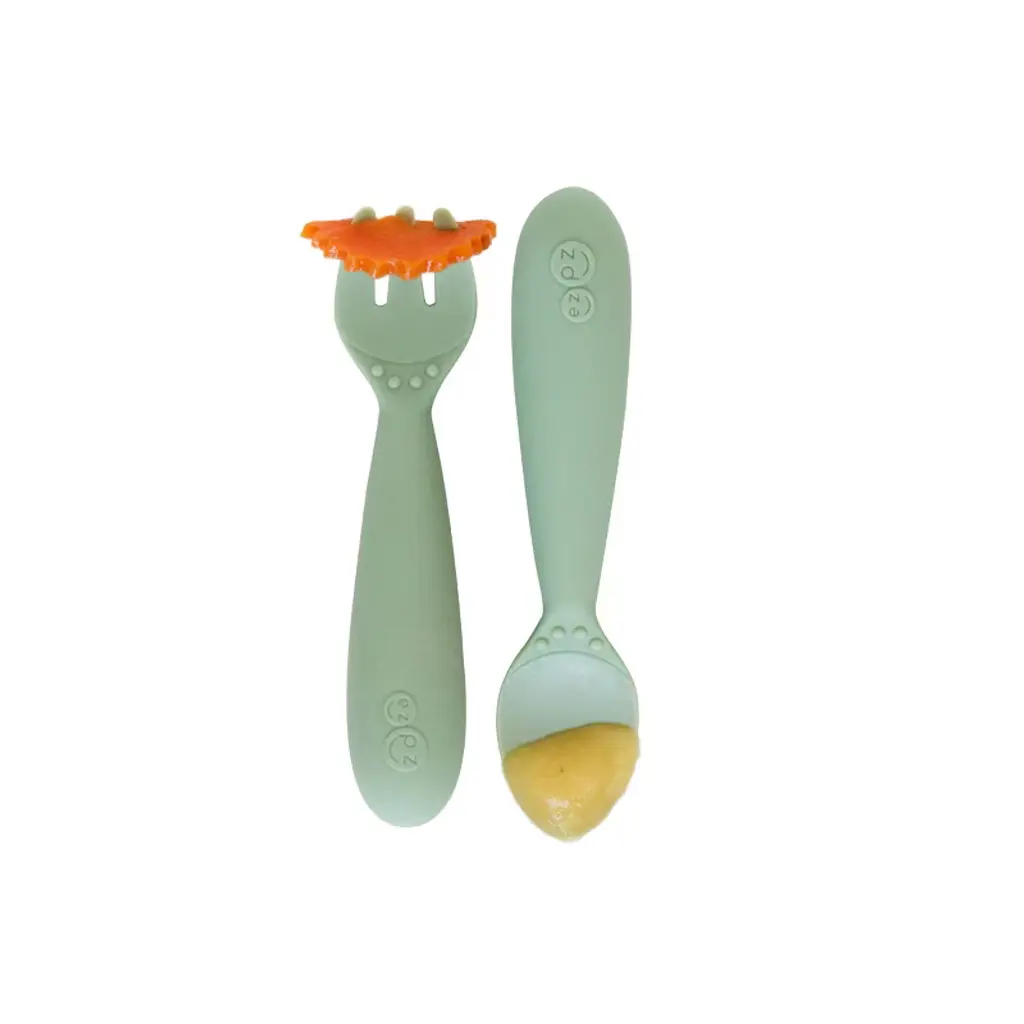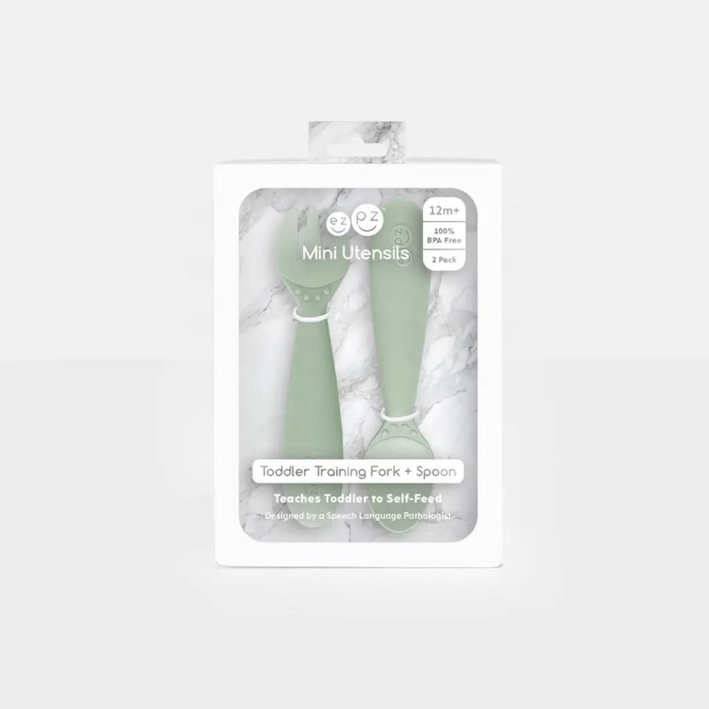 12+ Months + From ezpz - the brand parents trust for developmental feeding products. Learning to self-feed is an important developmental milestone, and the ezpz Mini Utensils are designed to help toddler learn how to eat with a spoon (scoop) and fork (pierce). The Mini Spoon and Fork are the most functional, developmentally appropriate toddler utensils on the market. Dimensions: 1 x 4.4 inches
