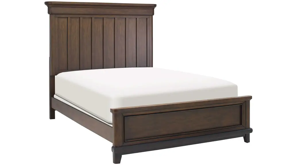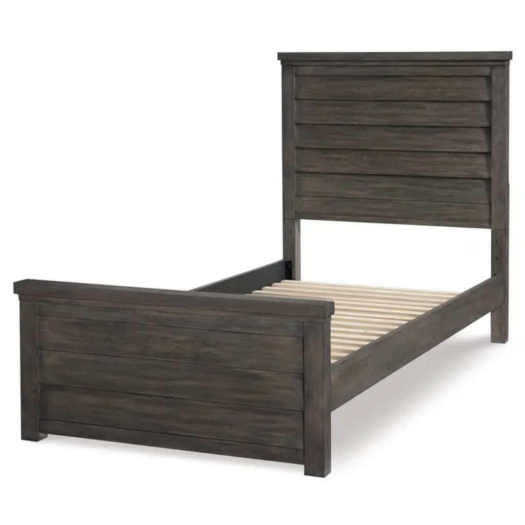 This panel bed is great for setting a versatile foundation in your child's bedroom, no matter their favorite color or distinct style. It's made from solid and engineered wood with a rich brown finish. The slat-style headboard and footboard offer a rustic touch we love, while intentional distressing adds a lived-in look that only gets better with age. Plus, the neutral hue is ideal for pairing with bold, patterned pillowcases, comforters, and sheets. This bed requires assembly upon arrival, but all tools are included.