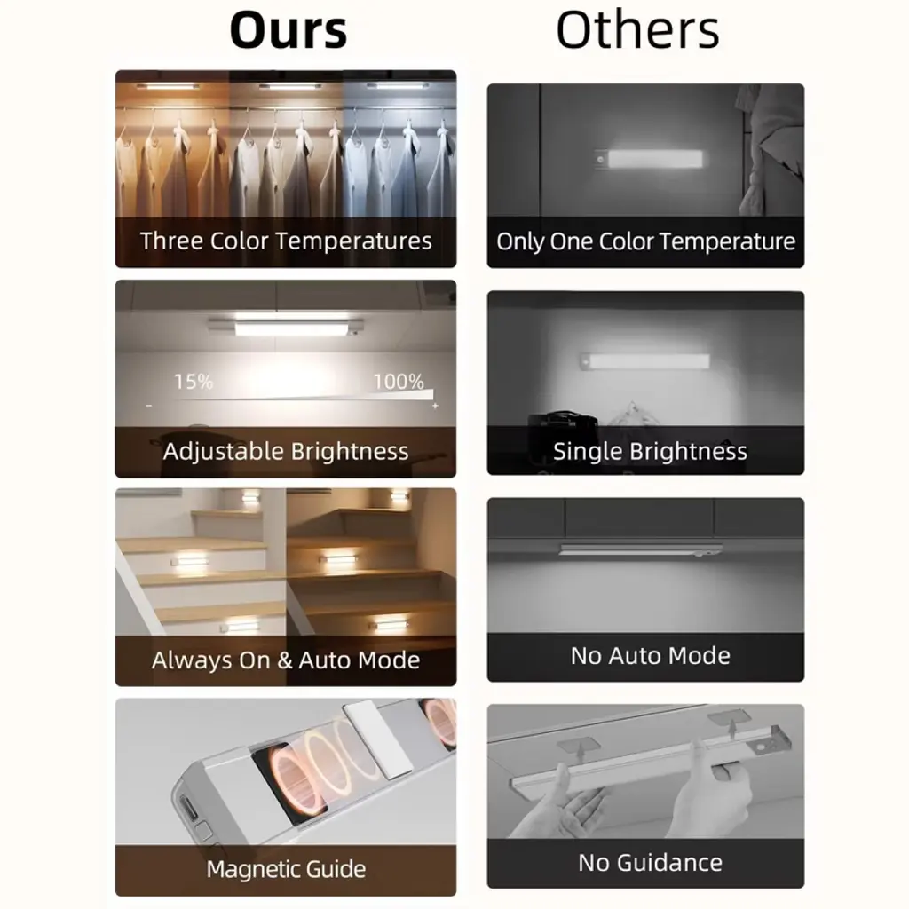 EZVALO’s rechargeable LED under-cabinet lights feature smart motion sensors, 3 color temperatures, and adjustable brightness. With a high-capacity rechargeable battery and easy installation options, these lights are perfect for any space, offering reliable, energy-efficient lighting with long-lasting performance.