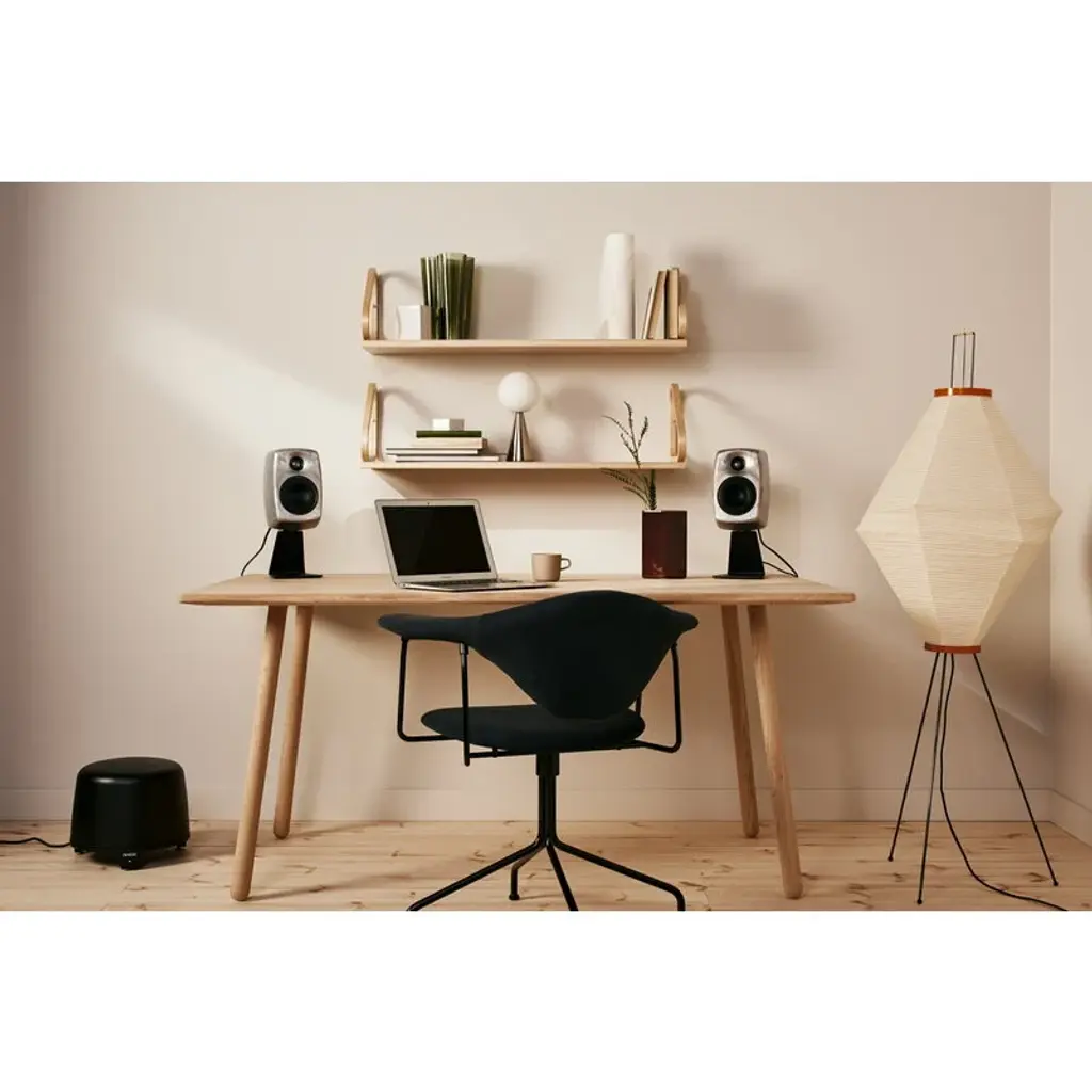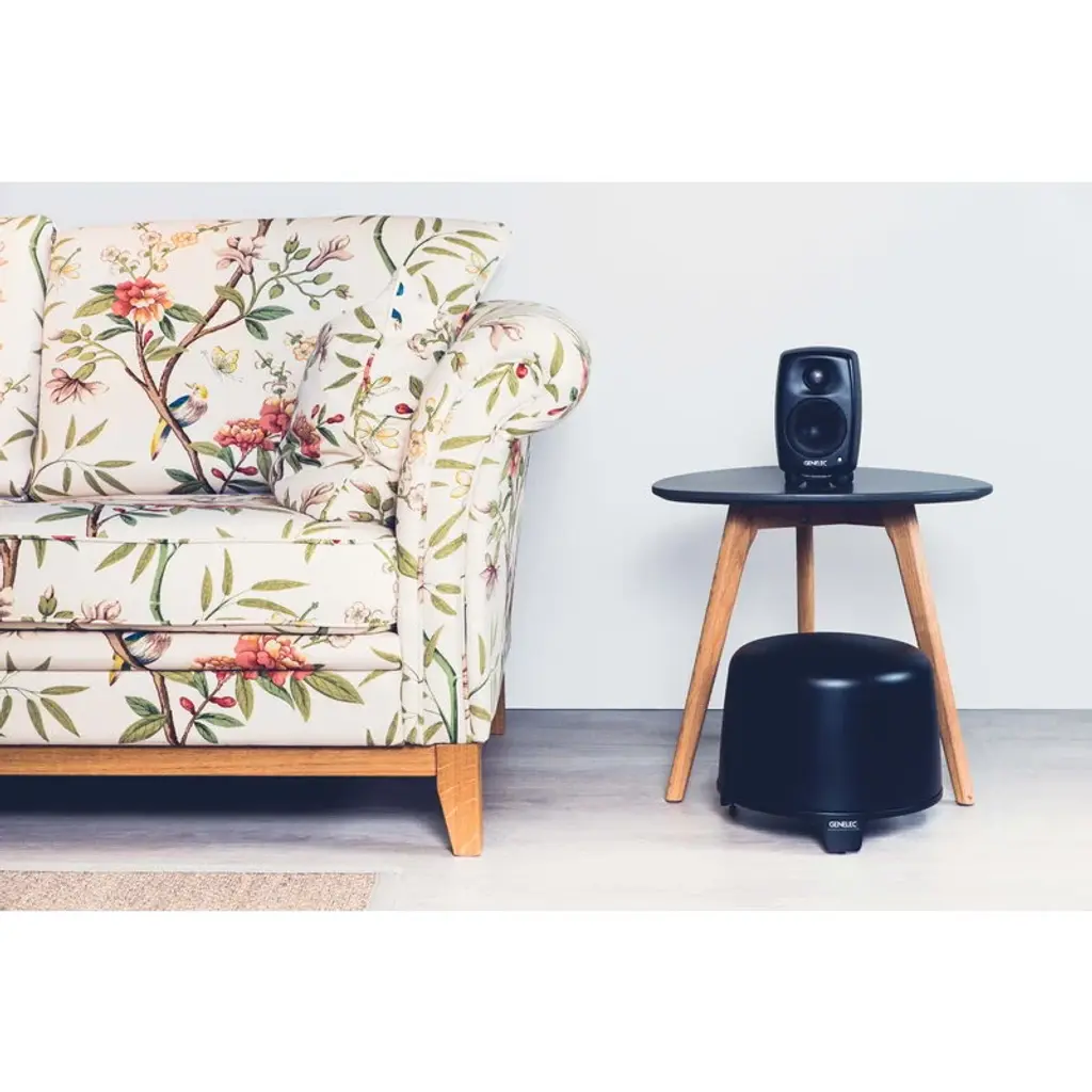 Genelec F One active subwoofer has an extremely small size yet an astonishingly bold performance, and it is able to reproduce low frequencies down to 35 Hz. The subwoofer makes a perfect pair for the active speakers of the Genelec G range. Thanks to its many inputs and range of remote control options, you can use the subwoofer as a hub to control your home audio system. F One can also learn IR remote control commands. The integrated bass control directs all frequencies under 85 Hz to the subwoofer, enabling the main speakers to focus on the rest of the spectrum. The Genelec speakers have been designed to provide the listeners with even the most subtle nuances without removing or adding anything to the original sound. The rounded lines and refined design by Harri Koskinen gives the Genelec speakers a lovely, Scandinavian vibe. The Genelec speakers are manufactured in Iisalmi, Finland. Key technologies: Bass management Optimized amplifiers Protection circuitry Room response compensation Active crossovers Intelligent Signal Sensing (ISS)