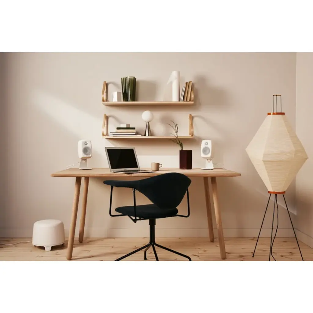 Genelec F One active subwoofer has an extremely small size yet an astonishingly bold performance, and it is able to reproduce low frequencies down to 35 Hz. The subwoofer makes a perfect pair for the active speakers of the Genelec G range. Thanks to its many inputs and range of remote control options, you can use the subwoofer as a hub to control your home audio system. F One can also learn IR remote control commands. The integrated bass control directs all frequencies under 85 Hz to the subwoofer, enabling the main speakers to focus on the rest of the spectrum. The Genelec speakers have been designed to provide the listeners with even the most subtle nuances without removing or adding anything to the original sound. The rounded lines and refined design by Harri Koskinen gives the Genelec speakers a lovely, Scandinavian vibe. The Genelec speakers are manufactured in Iisalmi, Finland. Key technologies: Bass management Optimized amplifiers Protection circuitry Room response compensation Active crossovers Intelligent Signal Sensing (ISS)