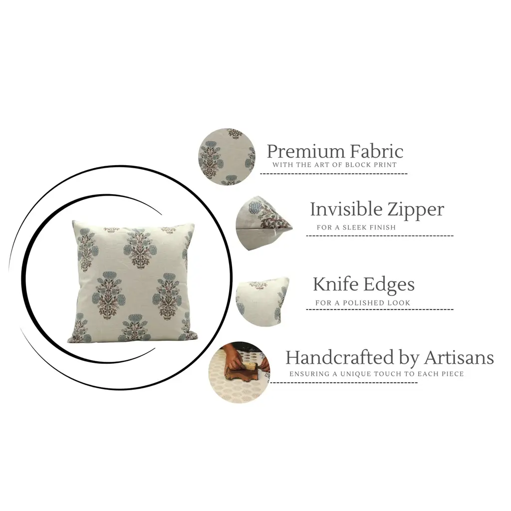 Fabdivine Decorative Block Print Cushion Cover 20x20 Inch Pure Linen-Swadesh