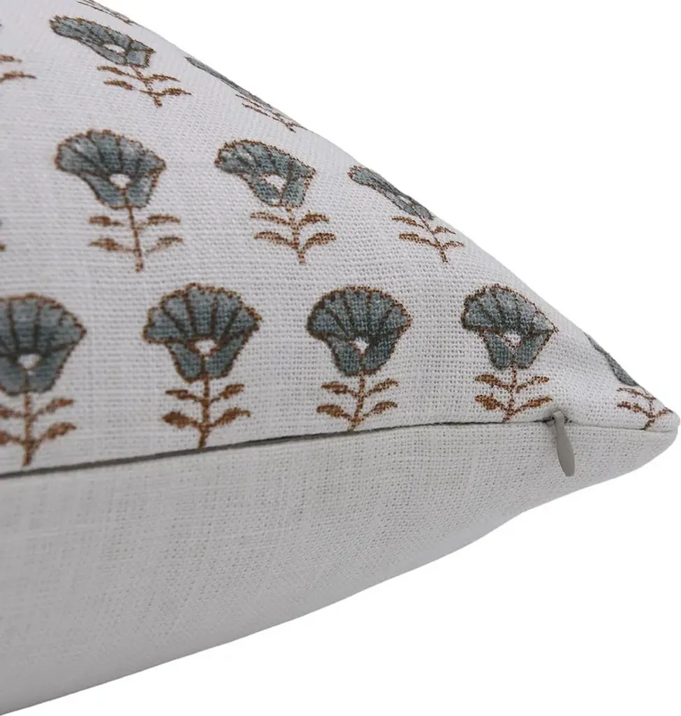 Fabdivine Indian Block Print Cushion Cover 20x20 Inch Off-White Linen-Kohinoor