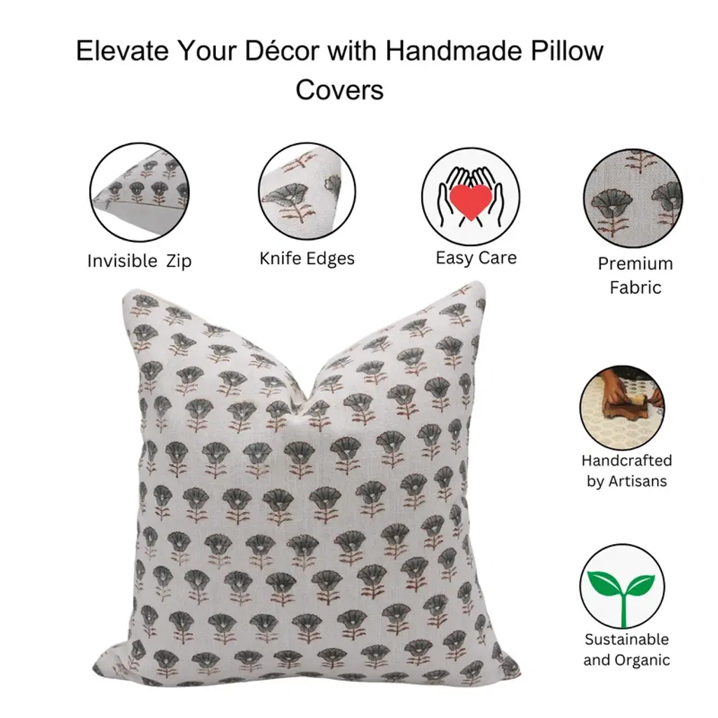 Handmade Block Print Cushion Cover – Kohinoor Print on Off-White Linen Add a touch of regal charm to your decor with the Kohinoor Print Handmade Cushion Cover, named after the legendary diamond and inspired by timeless Indian elegance. The intricate Kohinoor motif is hand block-printed by skilled artisans, offering a graceful blend of heritage artistry and modern simplicity.