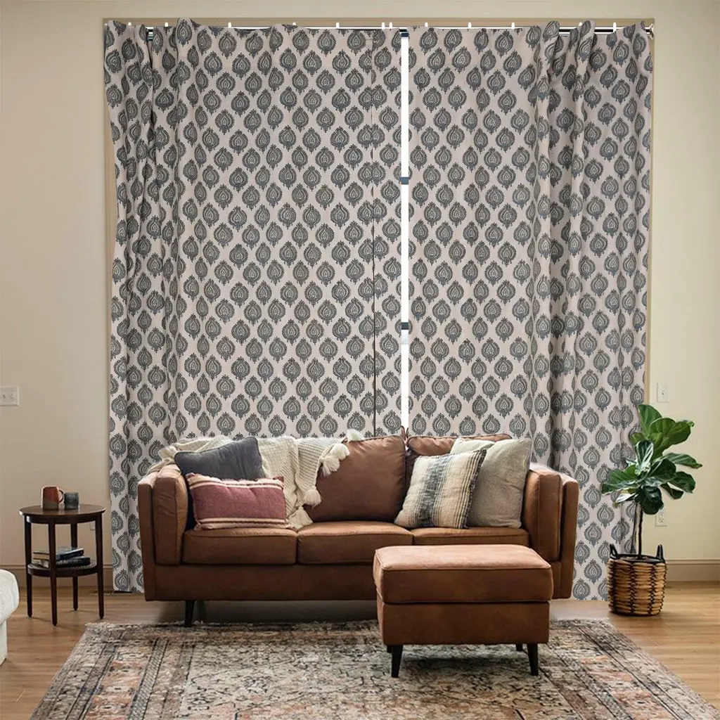 Fabdivine Viscose Linen Ring Curtain Handcrafted Block Print Elegance Size-54"x72" - Uday