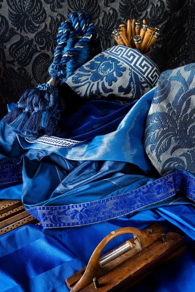 This is a semi mechanical Cordellone fabric, similar to a fine grosgrain. It is woven on an original loom from the 1850s. The Cordellone fabric belongs to the Antico Setificio Fiorentino archives. This fabric can be used for upholstery such as seats, wall coverings, drapery and pillows. It is an elegant fabric with a deep color.Art. CRC1 Cordellone S/CDesign: Dis.01 Color: Col.02 (Deep blue)Composition: 16% Silk - 84% CottonMeasures: Width 120 cm.Weight: 586 gr.No repeatPlease note this product is dry clean only.This fabric may be ordered with minimum quantities of 20 mt only. Delivery time to be confirmed upon order request.All prices are vat excluded.