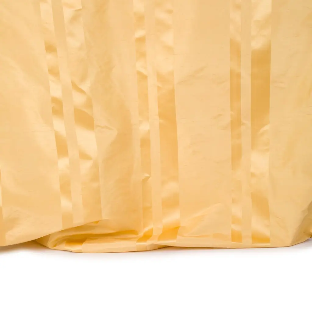 This is a semi mechanical Le Roy fabric with a grosgrain back and satin stripes. It is woven on an original loom from the 1850s. The Le Roy fabric belongs to the Antico Setificio Fiorentino archives. This fabric can be used for light upholstery such as seats, drapery and pillows. This fabric is classic but timeless. Its elegant satin stripes and shantung back make it an unique textileArt. LRSH Le Roy ShantungDesign: Dis.01 Color: Col.05 (Gold)Composition: 100% Silk Width: 120 cm.Weight: 138 gr.Repeat: Horizontal 30 cmPlease note this product is dry clean only.This fabric may be ordered with minimum quantities of 20 mt only. Delivery time to be confirmed upon order request.All prices are vat excluded.