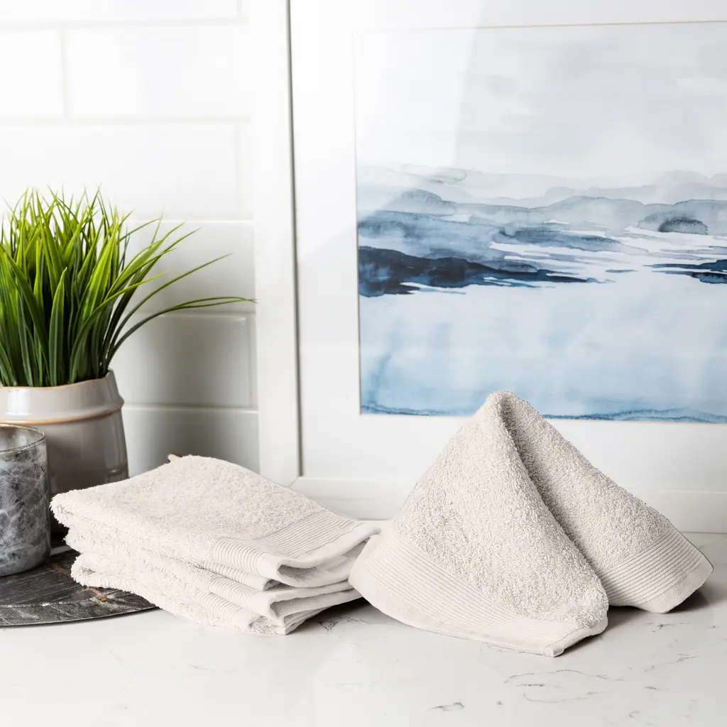 Set includes 6 large face towels that measure 13" X 13" High-Quality Construction: Made using 100% Zero Twist Cotton, zero-twist construction uses longer and stronger cotton fibers, allowing them to be looped through the towel base instead of twisted out from the towel. Loops, instead of twists, give the towel three substantial benefits: Absorbency, Softness, Durability. The face towel set is extremely versatile and can be used in various settings such as a bathroom, Gym, Kitchen, and can be used as a washcloth for cleaning surfaces.