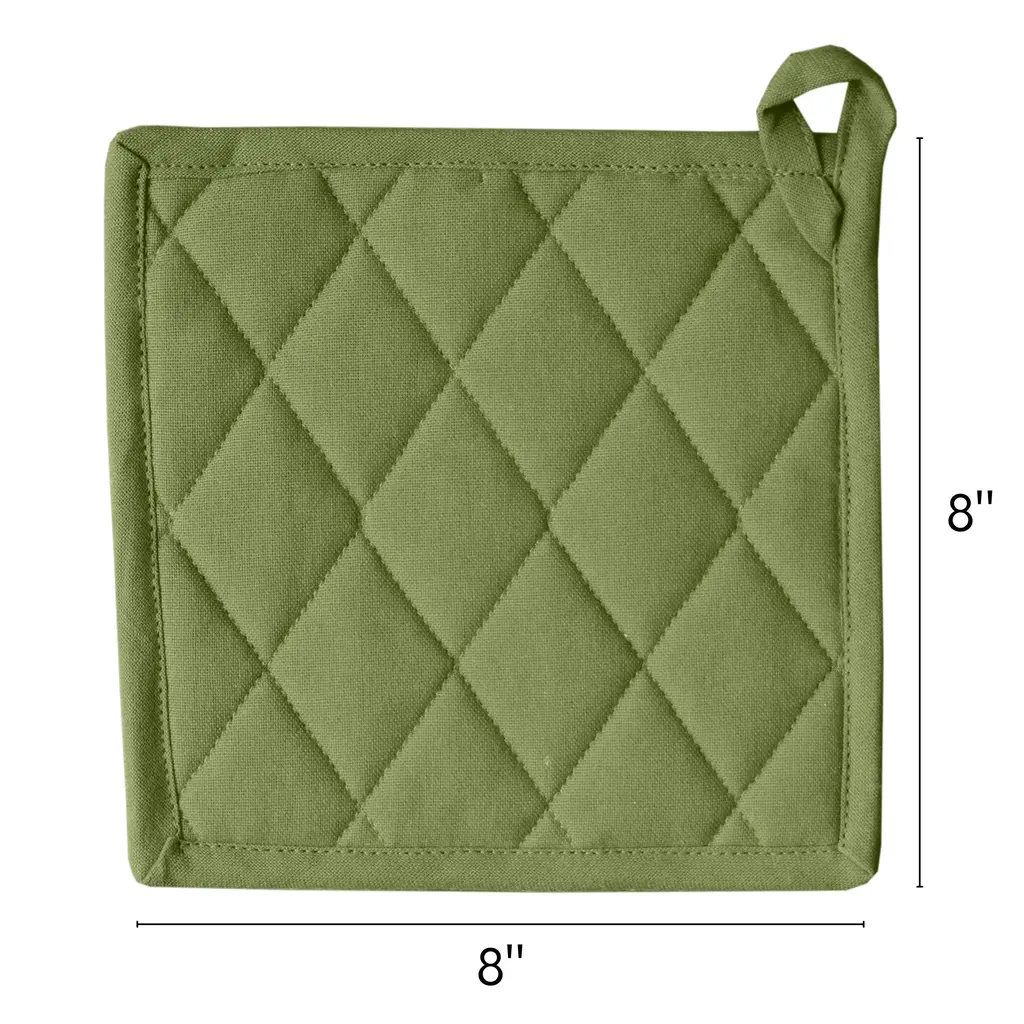 With its distinctive puckered texture and ample filling, the solo pot holder protects hands from hot dishes and pans. For a coordinated cooking experience, pair our solo pot holder with the matching oven mitt and dish towel. Created with 100% heavy duty cotton fabric Oven mitts measure 8" X 8" Crafted with a beautiful solo waffle design