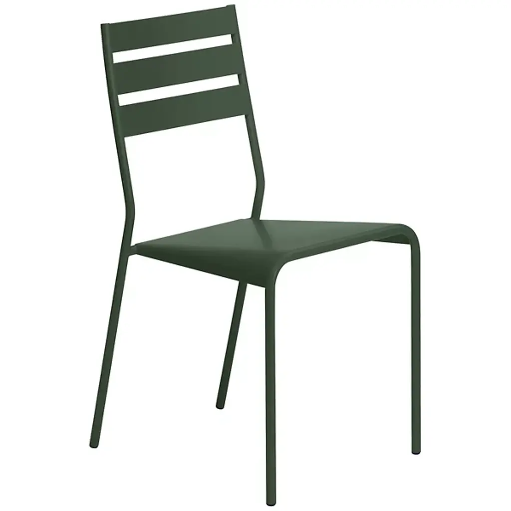 The Facto Chair, Set of 2 by Fermob is a bold and sophisticated design for an outdoor space. Designed Patrick Jouin, the chair features a slender, tubular steel frame that is light and airy yet sturdy and durable. With no visible connections between the seat and backrest or the seat and feet, the design appears as if it's made from one elegant piece of steel. It is stackable in sets of 4 and features an epoxy-type finish that makes it perfect for use in a garden, patio or terrace.