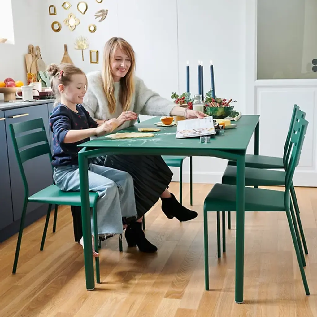 The Facto Chair, Set of 2 by Fermob is a bold and sophisticated design for an outdoor space. Designed Patrick Jouin, the chair features a slender, tubular steel frame that is light and airy yet sturdy and durable. With no visible connections between the seat and backrest or the seat and feet, the design appears as if it's made from one elegant piece of steel. It is stackable in sets of 4 and features an epoxy-type finish that makes it perfect for use in a garden, patio or terrace.