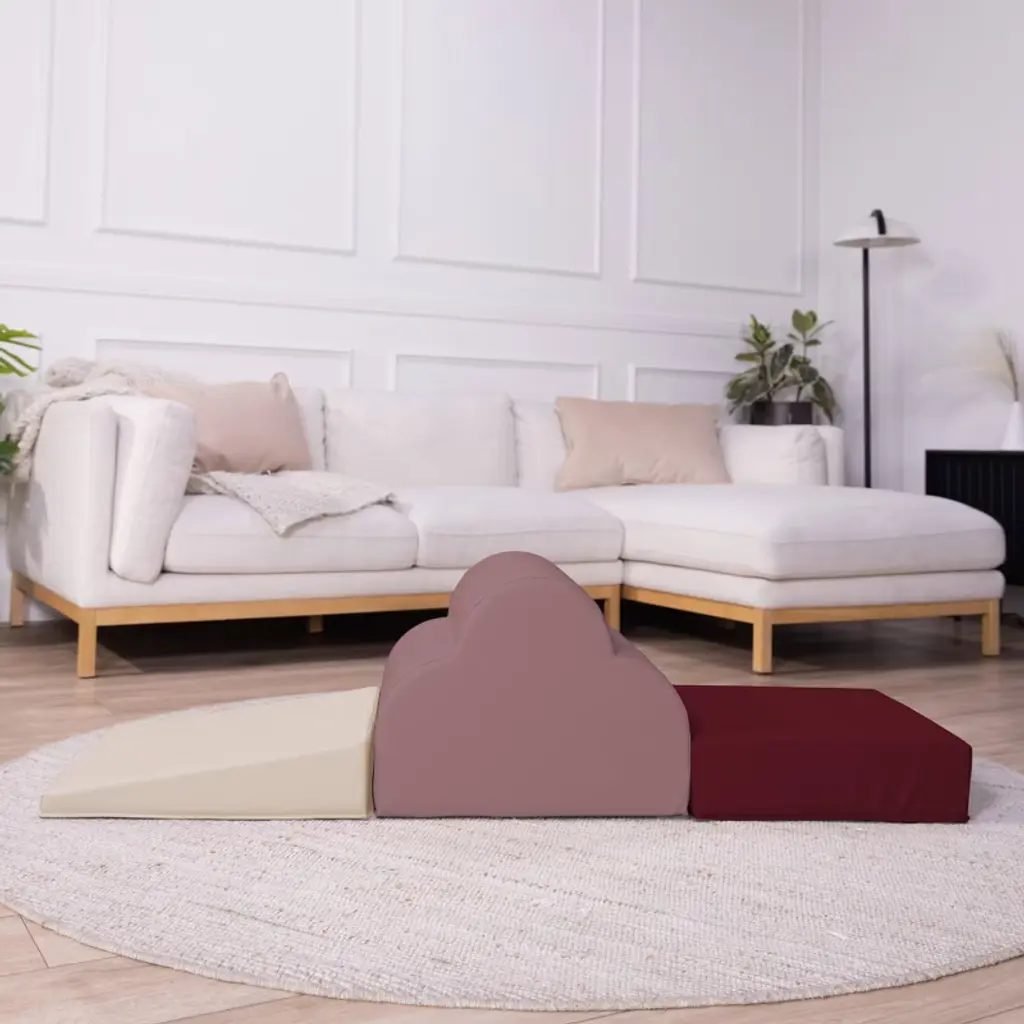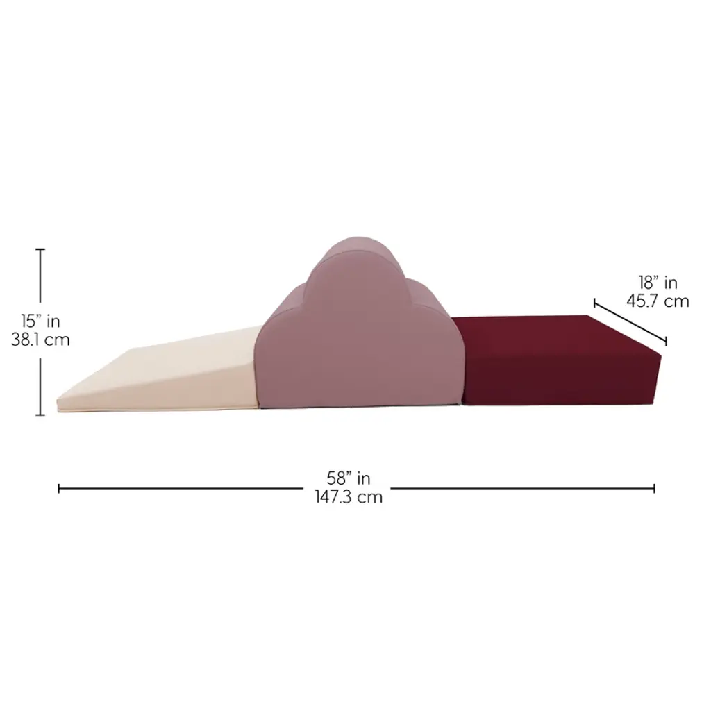 FDP's Softscape Cloud Climber with Ramp has your little one reaching new heights. Children develop gross motor skills as they climb the three swells to the top of the cloud. Non-slip bottom and hook-and-loop fasteners keep pieces in place during play. The dense foam shapes are covered in a soft leather-like polyurethane material that is easy to clean with a mild soap-and-water solution. The multi-level design makes this a great addition to your home, playroom, classroom, daycare and more.