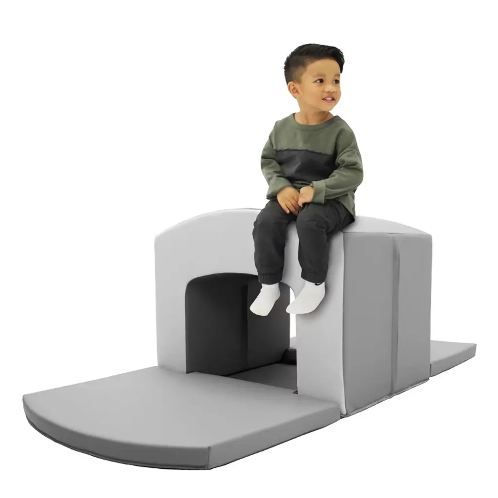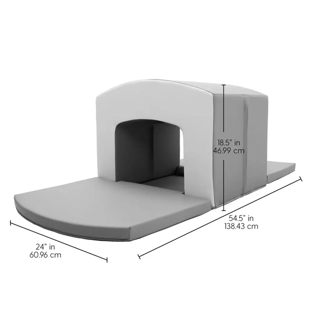 3-Piece Curved Top Tunnel Set Climber is an engaging playspace for your toddler. Hide in the tunnel or climb to the top, this piece is great for developing motor skills. The dense foam shapes are covered in a soft leather-like polyurethane material that is easy to clean with a mild soap-and-water solution. The multi-level design makes this a great addition to your home, playroom, classroom, daycare and more.