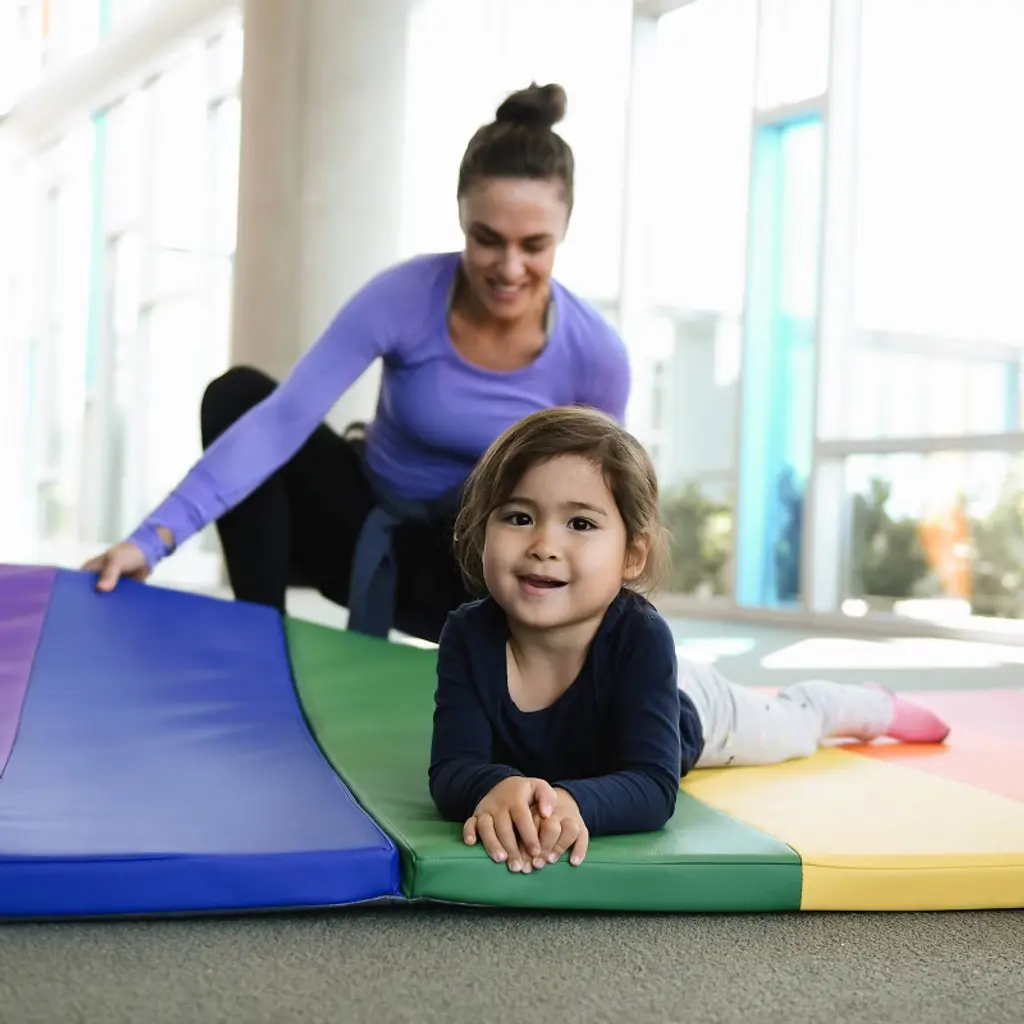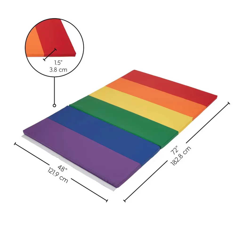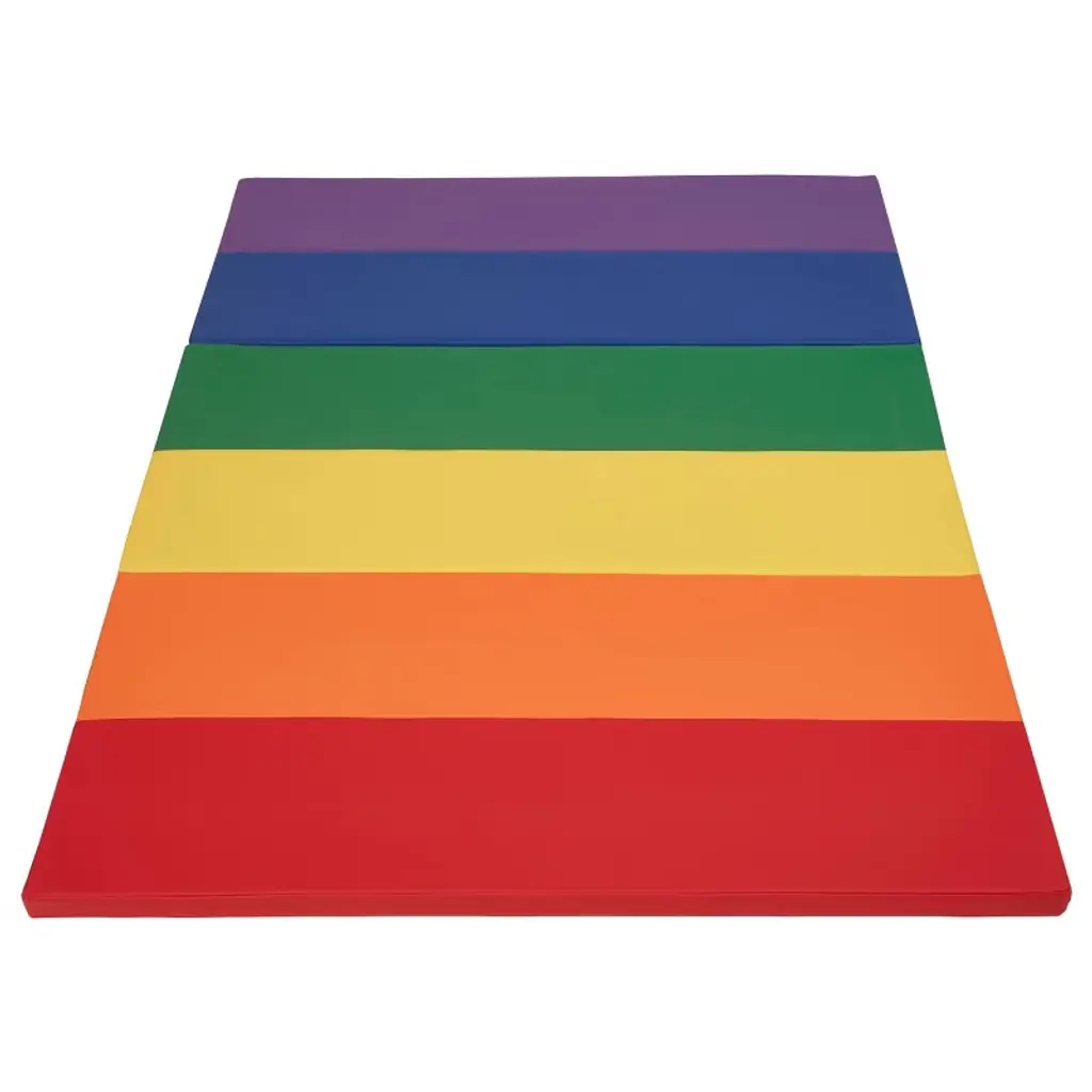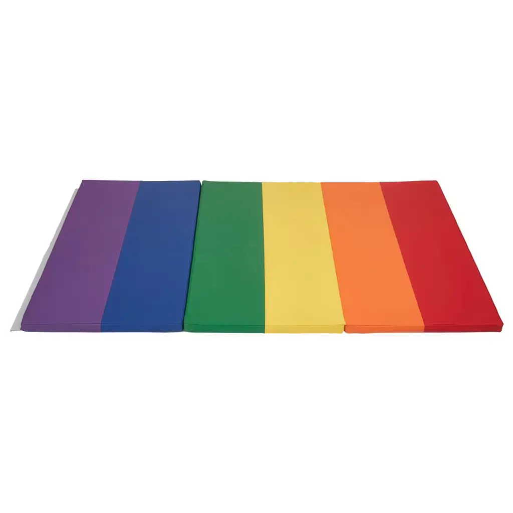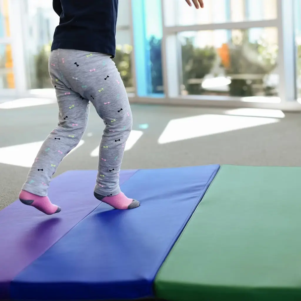 Kids love tumbling, rolling and relaxing on the SoftScape Tumbling Mats. 1-1/2" of dense foam keep kids safe and comfortable as they engage in active play or story time on the multiple brightly colored panels. Mats help encourage motor skill development in preschools, daycares and home environments. Connect tumbling mats together with the hook and loop extensions found at either end to create a play space of any length. Mats fold for easy transportation. Children should remove shoes before use.