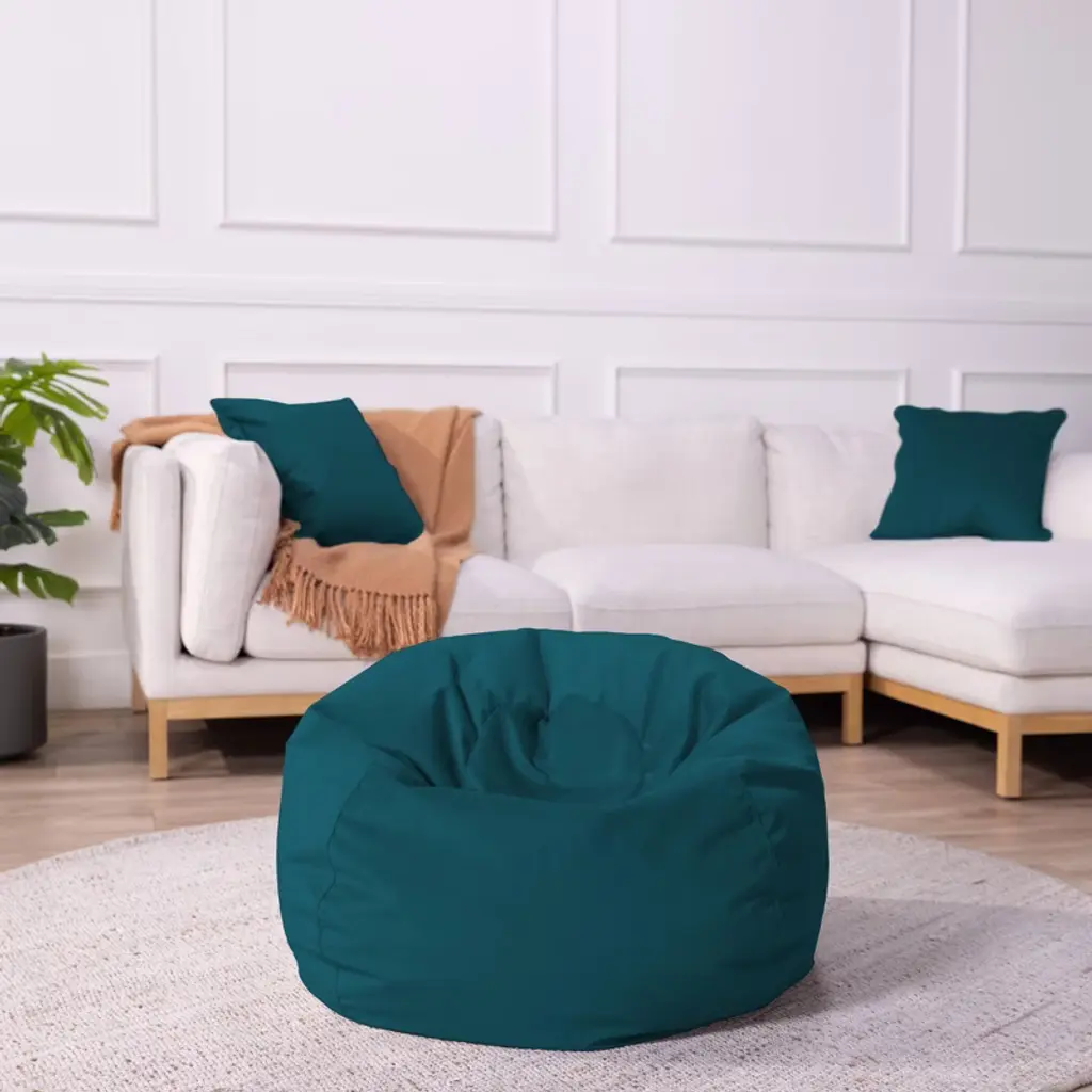Factory Direct Partners Kids' Round Velvety Bean Bag Peacock Blue