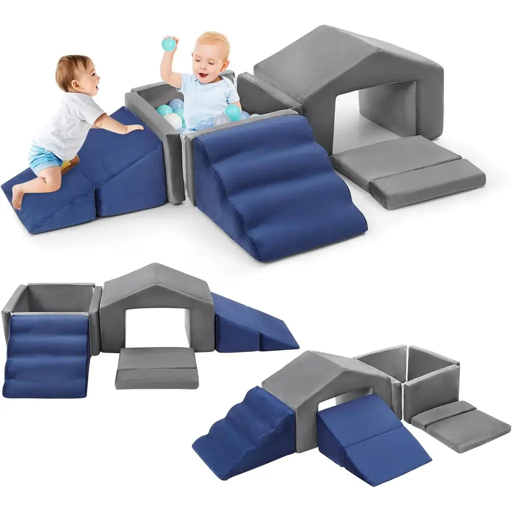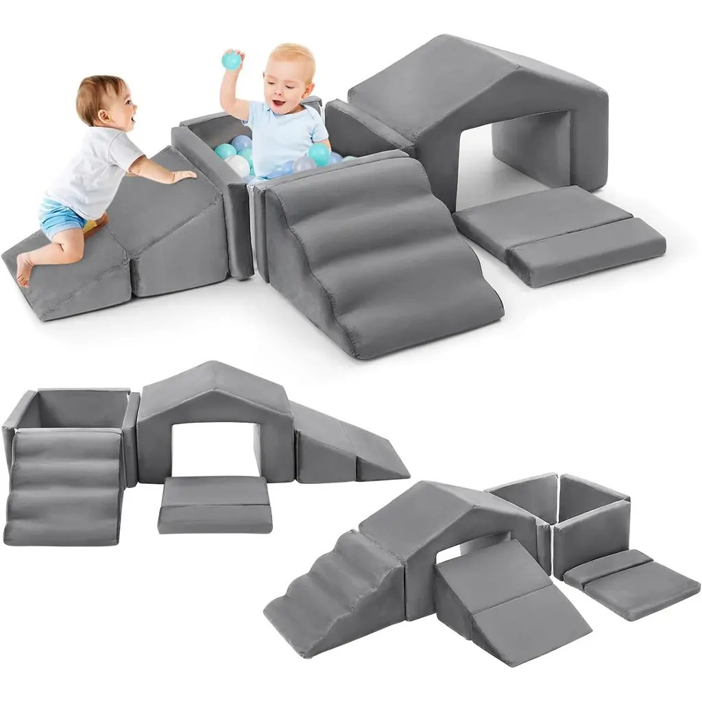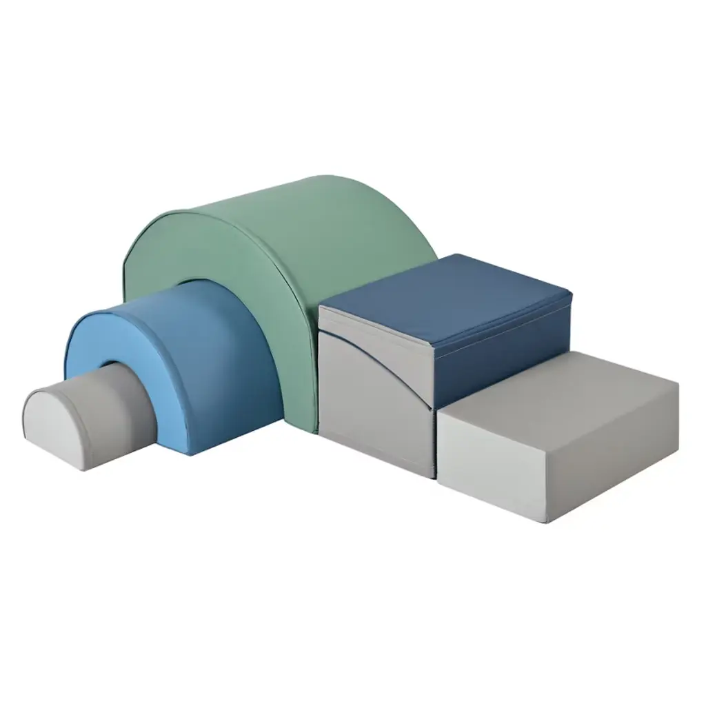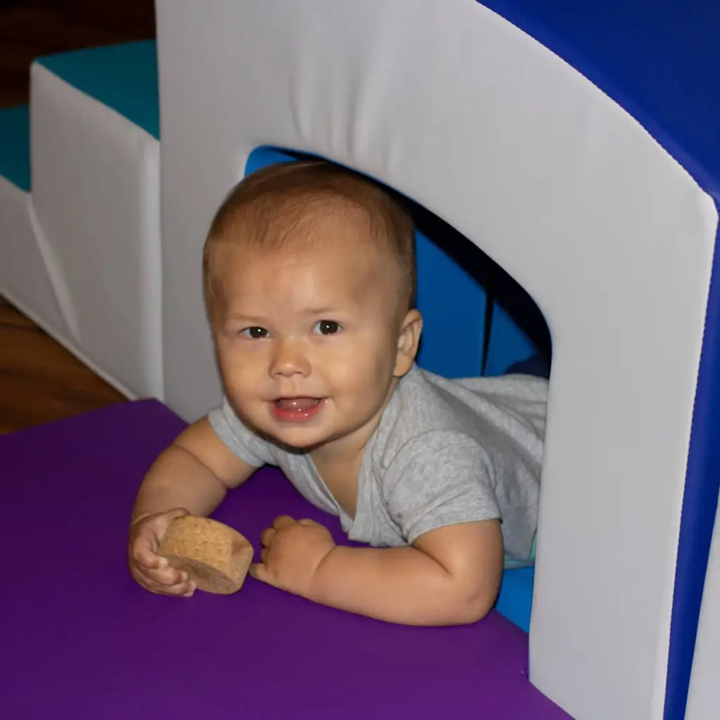 Explore new heights with the all-in-one Toddler Playtime Tunnel Climber! Stimulate young imaginations and motor skills by encouraging hands and feet to explore up the soft steps, crawl across or under the sturdy tunnel and coast down the gentle slide. Tunnel is made of sturdy foam to support little ones as they venture up and over, while soft side pads add extra cushion as kids crawl through. Pieces can be rearranged to build different configurations to accomodate kids as they grow and develop new skills. Children should remove shoes before play to ensure product longevity.