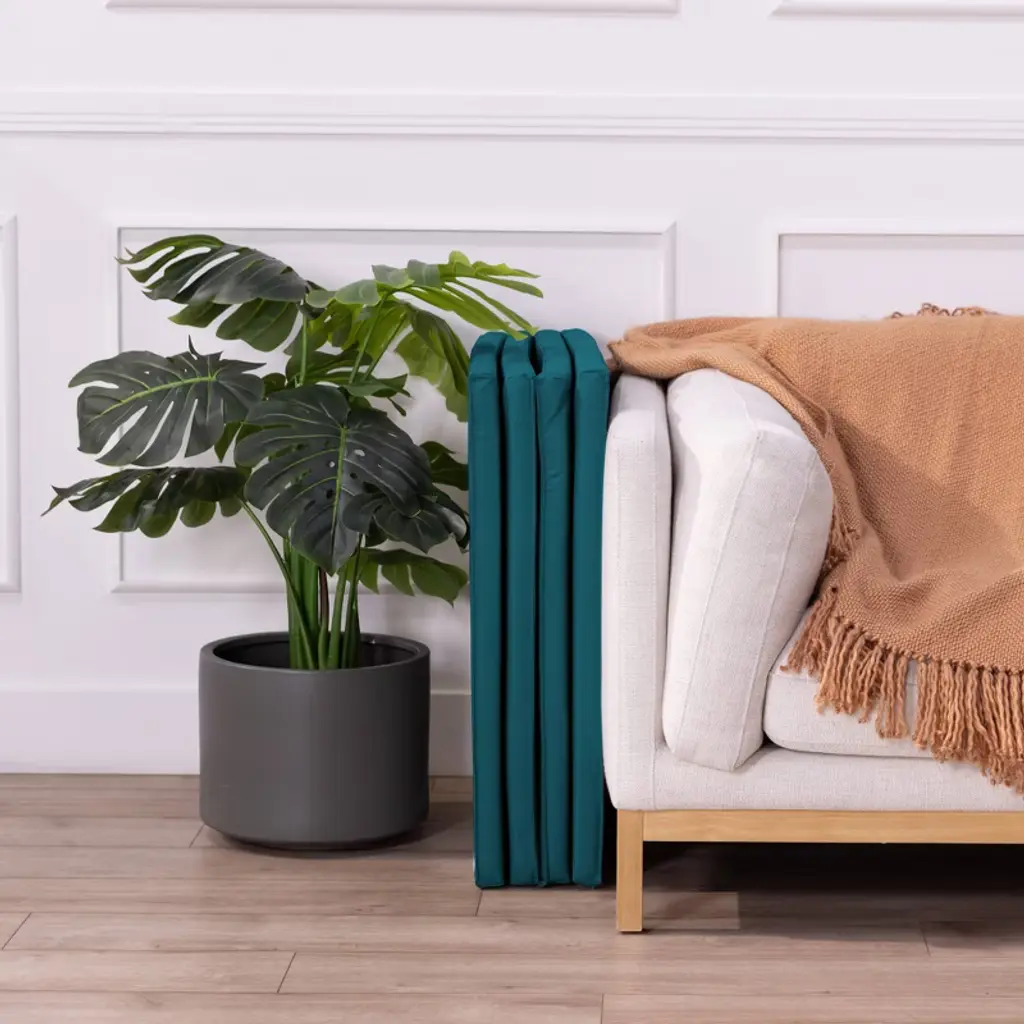 SoftScape Space Saver Activity Mats encourage the safe development of gross motor skills as little ones crawl, scoot and roll on the plush foam play mat that easily folds for storage. The smooth leather polyeurethane surface is bordered by soft microfiber for dual textures to explore. Durable, and easy to clean, this play mat is safe for little ones in daycares, preschools and homes. Simply fold the space-saving mat up to conveniently store when not in use.