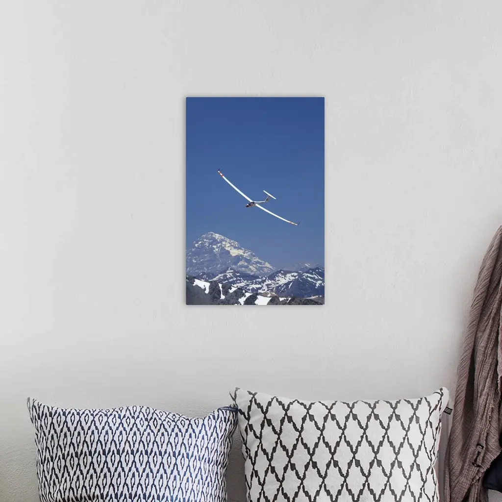 Eduard Supersperger (Austria), Racing in FAI World Sailplane Grand Prix, Andes Mountains, Chile, (and in distance Aconcagua 6,962 m - 22,841 ft, Argentina), South America.