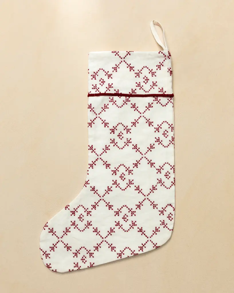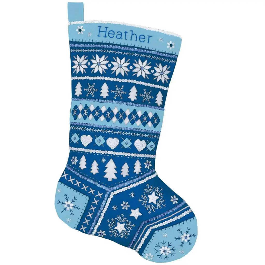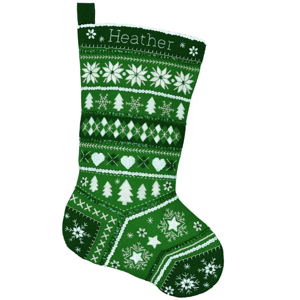 Bring timeless winter style to your holiday décor with the Fair Isle Red Felt Stocking Kit from MerryStockings. Inspired by traditional Nordic knitting patterns, this stocking features snowflakes, trees, and geometric accents arranged in a cozy red and white color scheme. Classic and clean, it’s a beautiful option for those who love simple design with handcrafted charm. Whether displayed solo or paired with matching family stockings, this kit delivers heirloom quality and festive warmth.