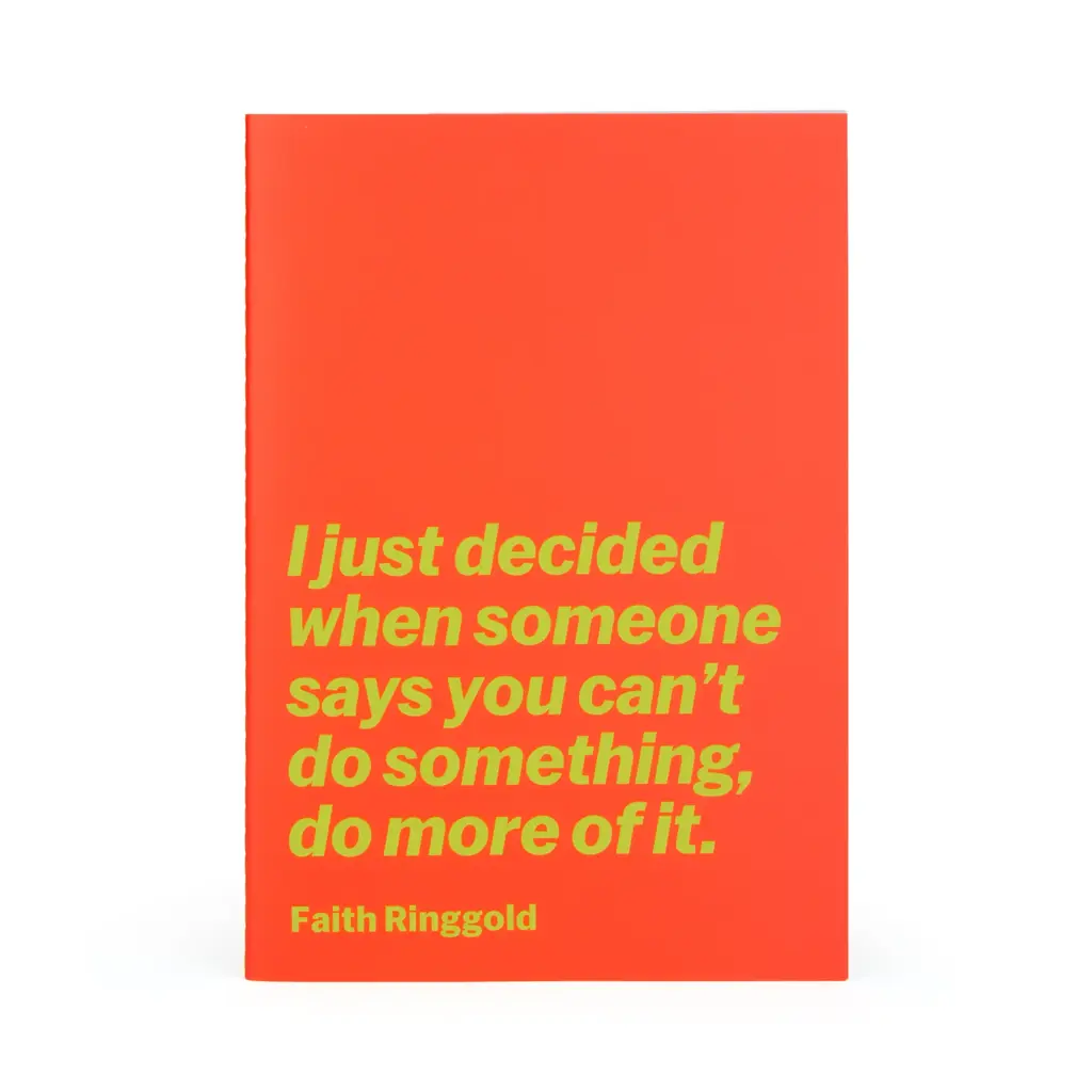 This magnet is printed with "I just decided when someone says you can't do something, do more of it."—a quote by Faith Ringgold, an artist with work in MoMA's collection. The magnet is digitally printed, laminated over a metal frame, with a magnet back and measures 3 x 3". Made in the USA.