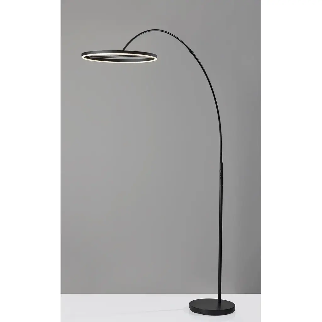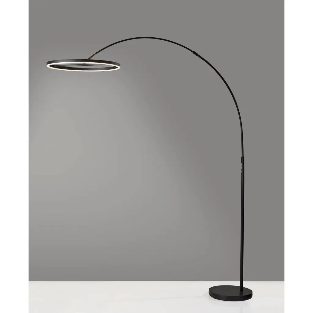 Introducing the 2154-01 Falcon LED Arc Lamp, a striking fusion of contemporary design and intelligent illumination. This arc lamp boasts a sleek black finish that embodies modern elegance. Its distinctive black metal ring-shaped shade is paired with a frosted rubber diffuser, delivering a captivating and highly functional lighting solution. With an impressive height of 81.5 inches and an expansive reach of 67 inches, the Falcon LED Arc Lamp provides flexible and adjustable lighting for your space. Designed for precision control, this lamp features a touch-sensitive smart switch that allows you to tailor your lighting experience. With six brightness levels and five color temperature settings at your fingertips, you can create the perfect ambiance for any occasion. The Falcon LED Arc Lamp is more than just a light source; it's a refined lighting solution that enhances and elevates your environment. Contemporary Elegance: The 2154-01 Falcon LED Arc Lamp features a sleek black finish, seamlessly blending modern aesthetics with functional design. Innovative Shade: The lamp showcases a unique black metal ring-shaped shade, complemented by a frosted rubber diffuser, delivering captivating and efficient lighting. Impressive Height and Reach: Standing tall at 81.5 inches with a 67-inch reach, this arc lamp offers versatile and adjustable lighting to suit your needs. Adjustable Shade: The Falcon LED Arc Lamp's shade is adjustable, allowing you to direct light precisely where you need it, enhancing versatility and control. Intelligent Control: With a touch-sensitive smart switch, enjoy precise control over six brightness levels and five color temperature settings, enabling you to craft the perfect lighting ambiance for any occasion