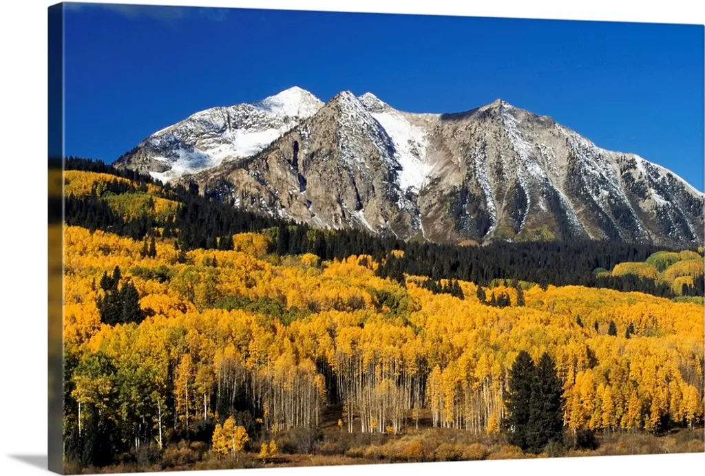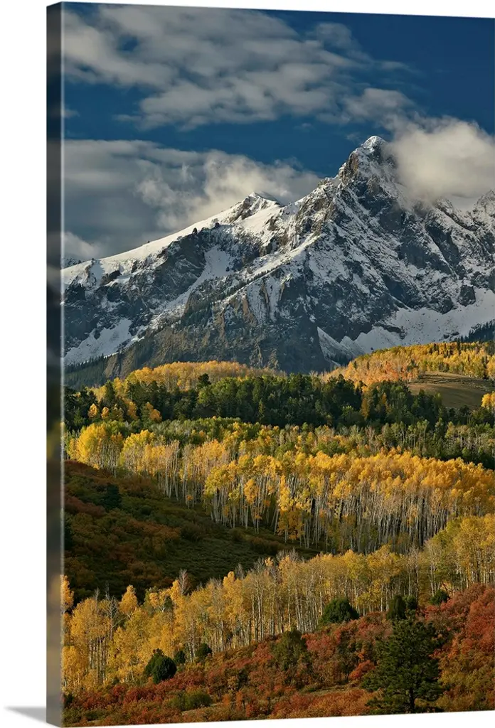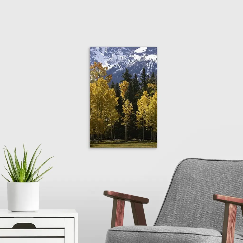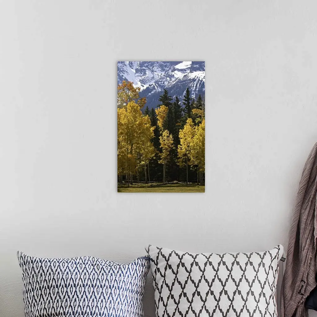 Fall colors of aspens with evergreens, near Ouray, Colorado wall art for home and office decor. Discover canvas art prints, photos, mural, big canvas art and framed wall art in GreatBigCanvas.com's varied collections.
