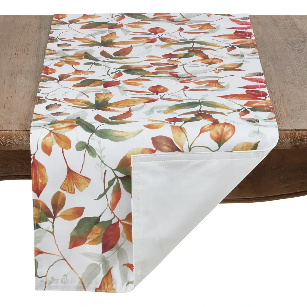 Fall Leaves Design Runner In Soft Tones - 16"x90"