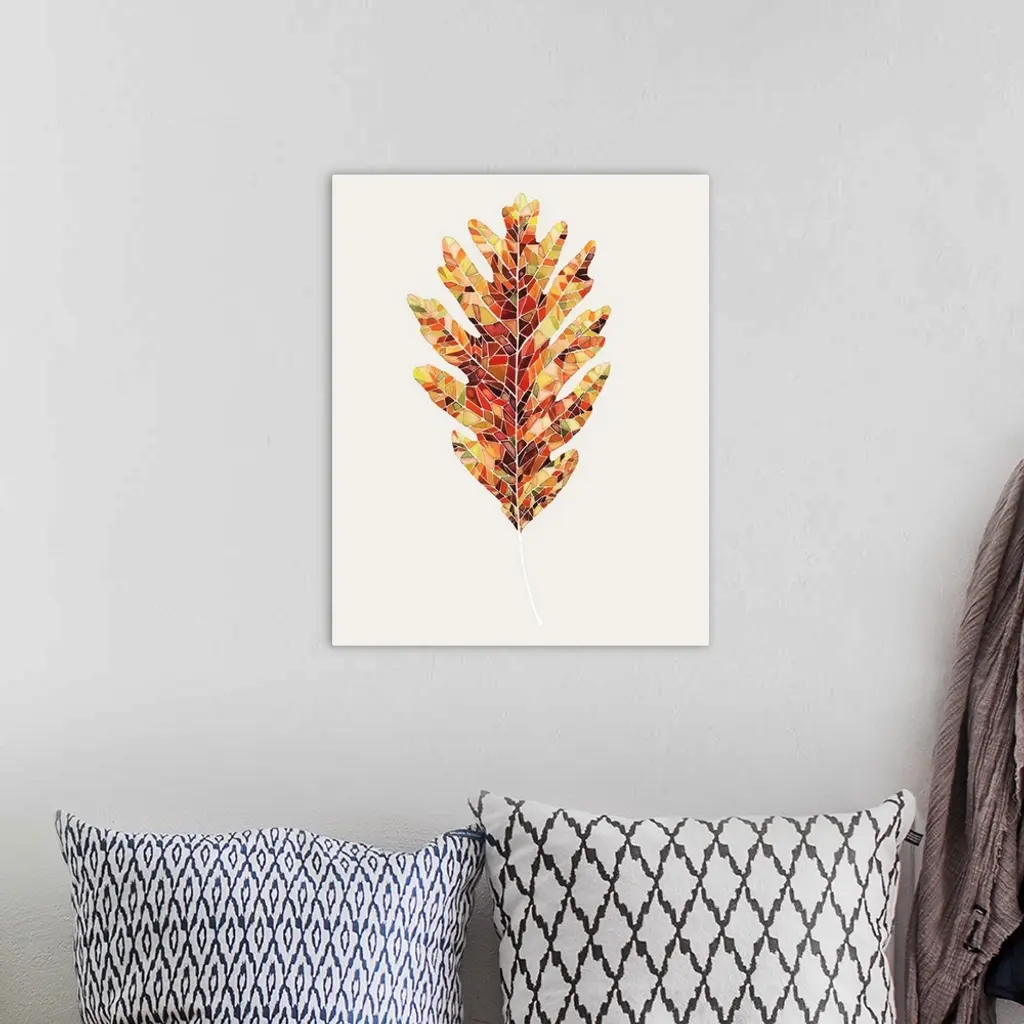 Outline of a leaf with orange and yellow shapes within, resembling a mosaic.