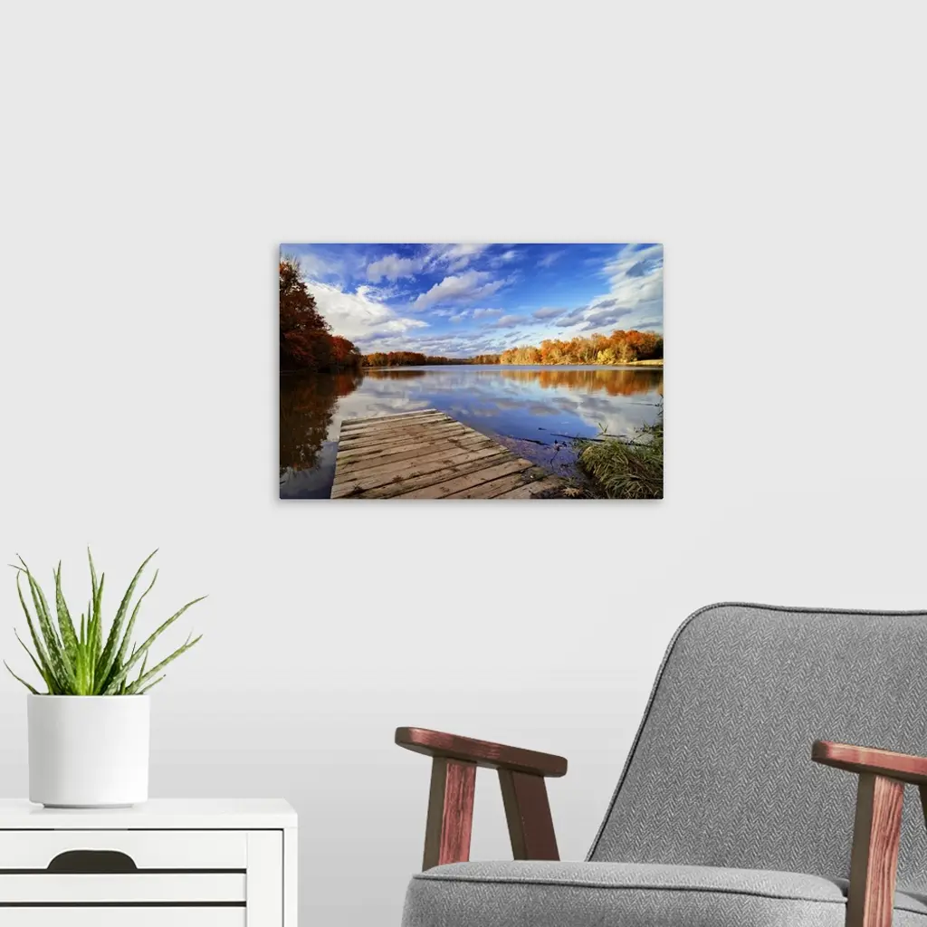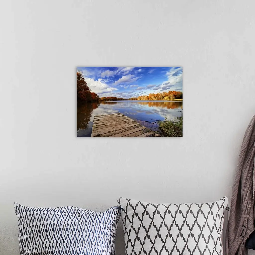 Fall Scenic View Of Lake Cushetunk, New Jersey