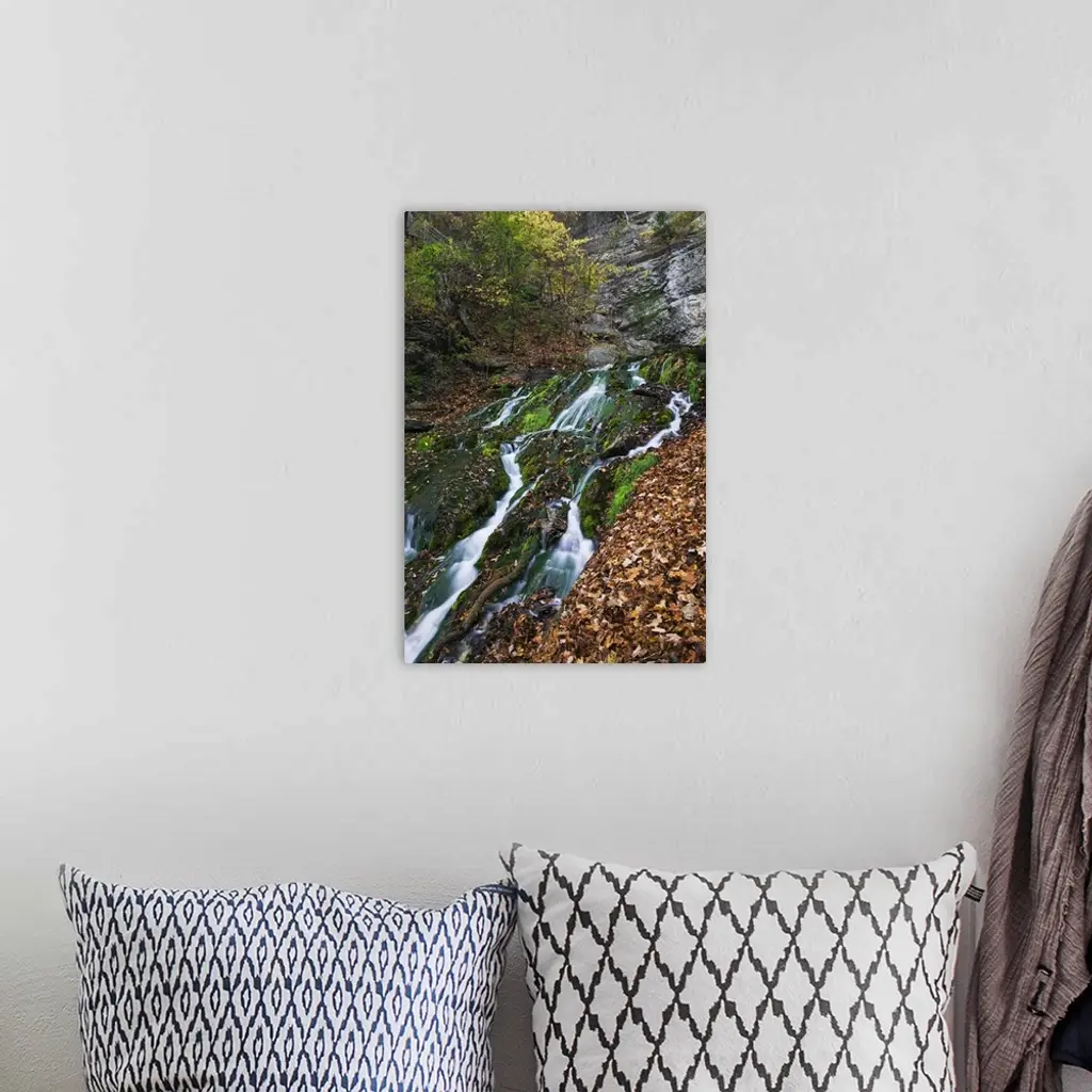 Fallen autumn color leaves beside Dunnings Spring, Dunnings Spring City Park, Iowa wall art for home and office decor. Discover canvas art prints, photos, mural, big canvas art and framed wall art in GreatBigCanvas.com's varied collections.