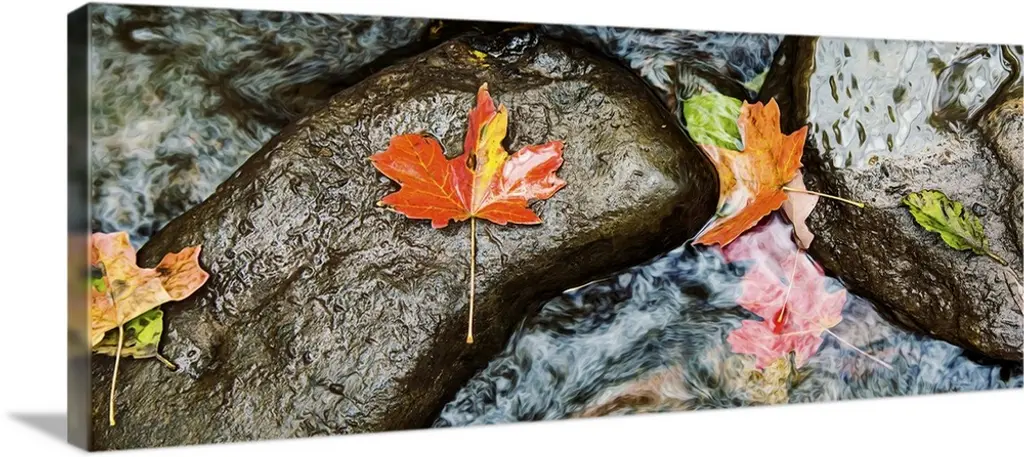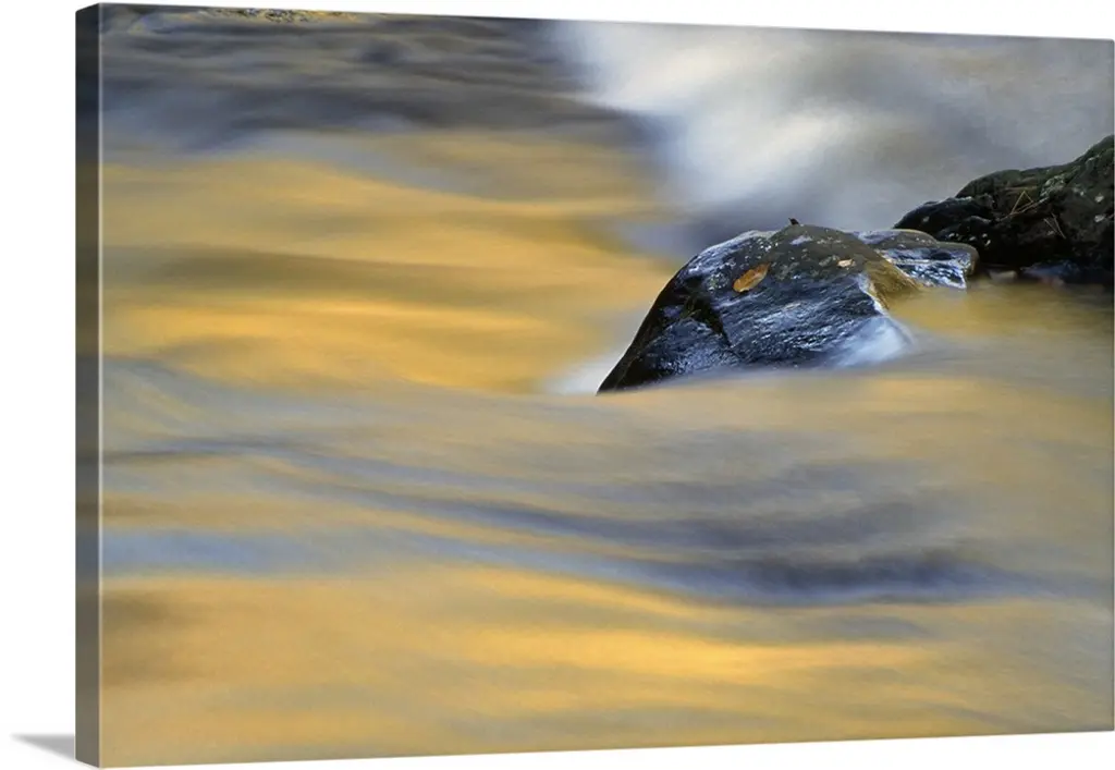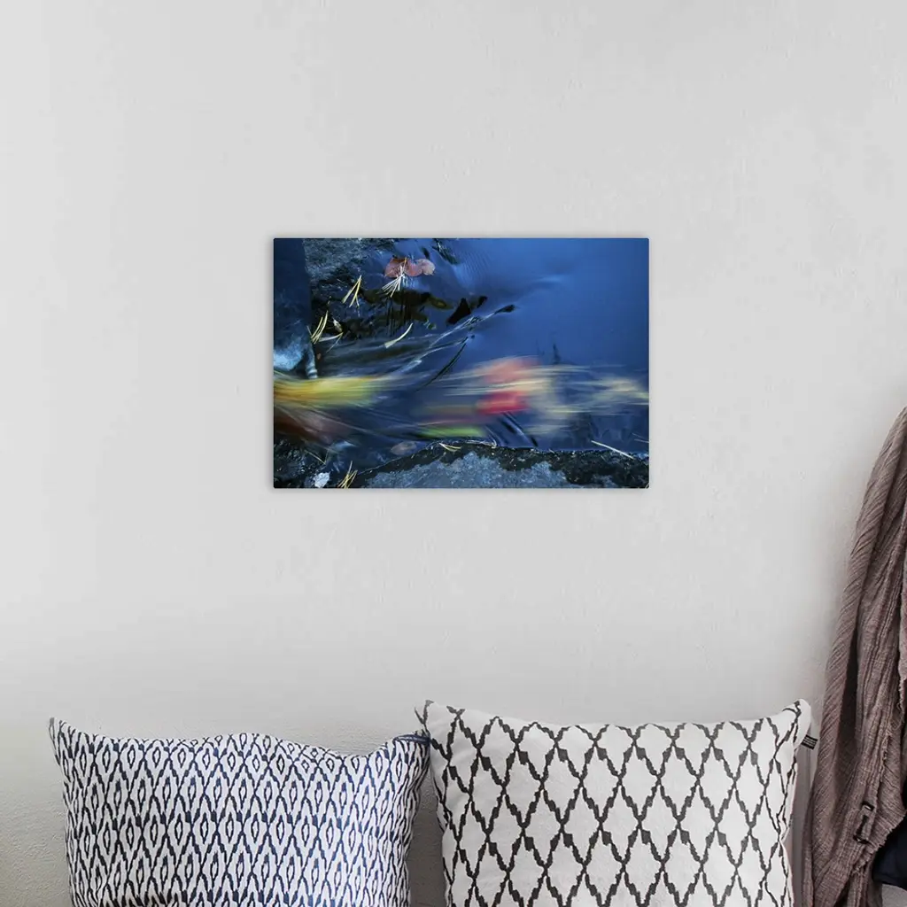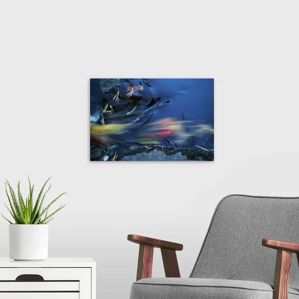 Fallen pine needles and autumn color leaves floating downstream, blurred motion, New York wall art for home and office decor. Discover canvas art prints, photos, mural, big canvas art and framed wall art in GreatBigCanvas.com's varied collections.