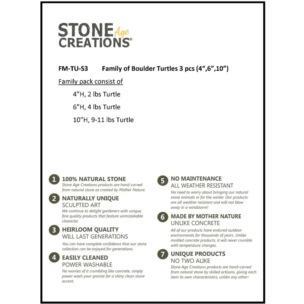 Family Of Boulder Turtles 3 Pcs 4"6"10"