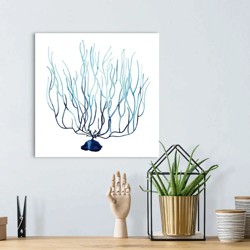 Simple watercolor illustration of coral in shades of blue.