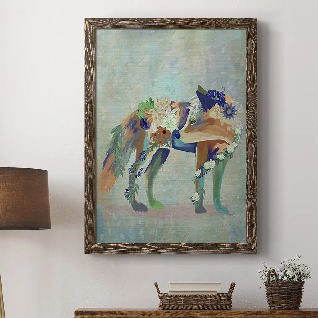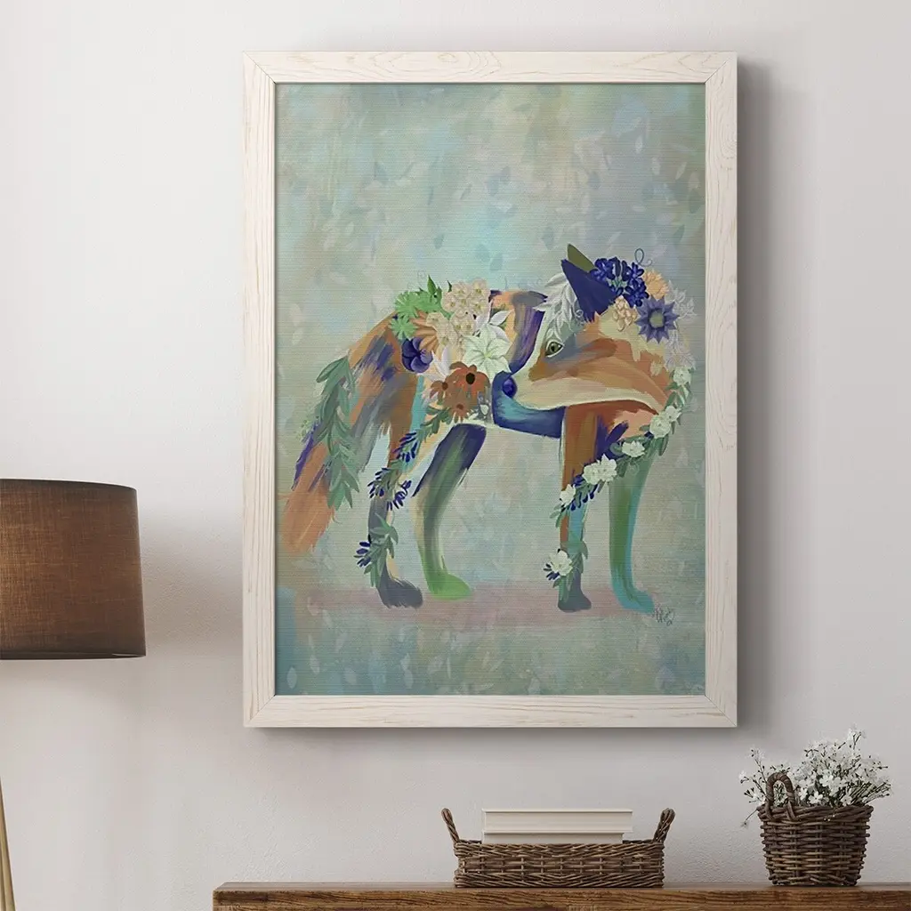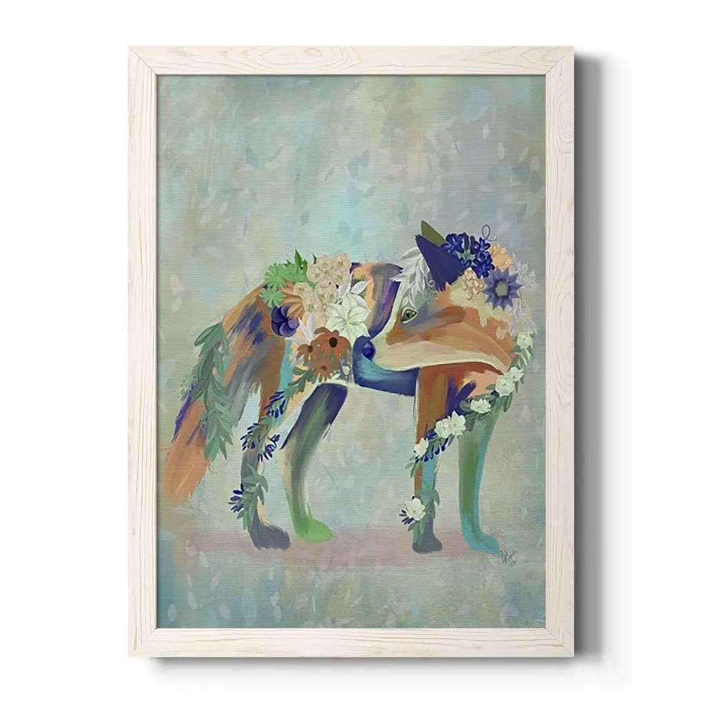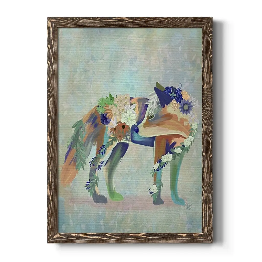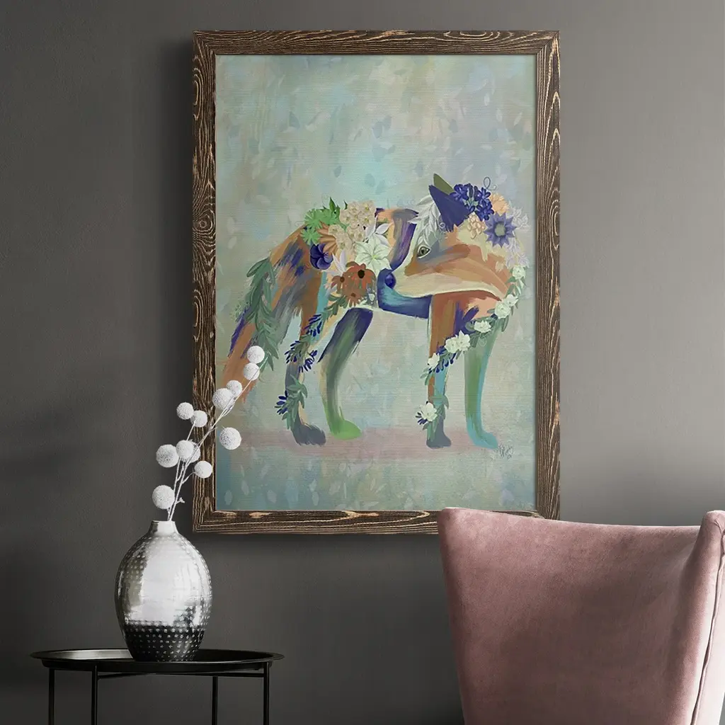 Fantastic Florals Fox, Standing-Premium Framed Canvas - Ready To Hang - 27.5x37.5 - Maple