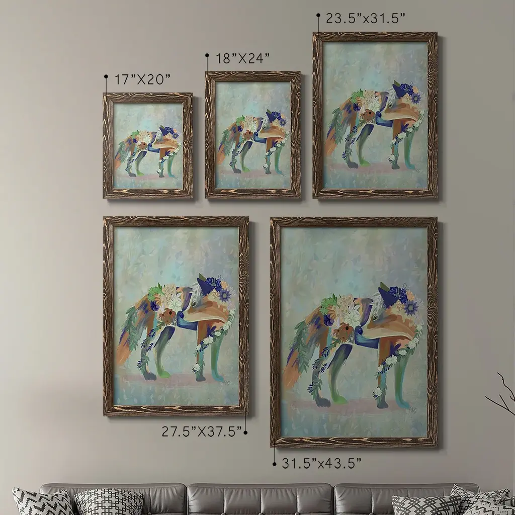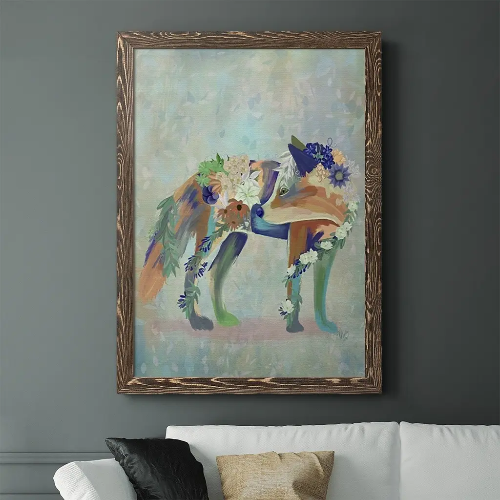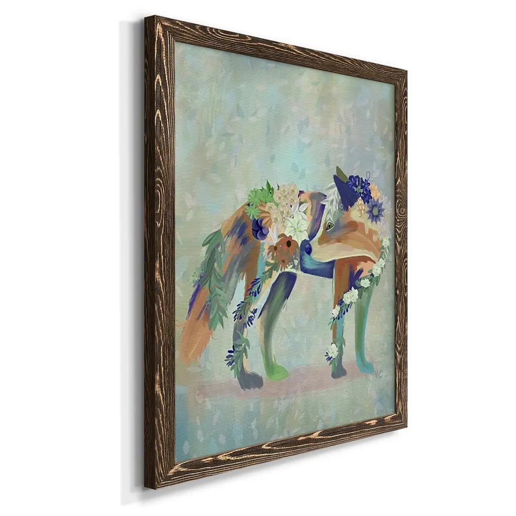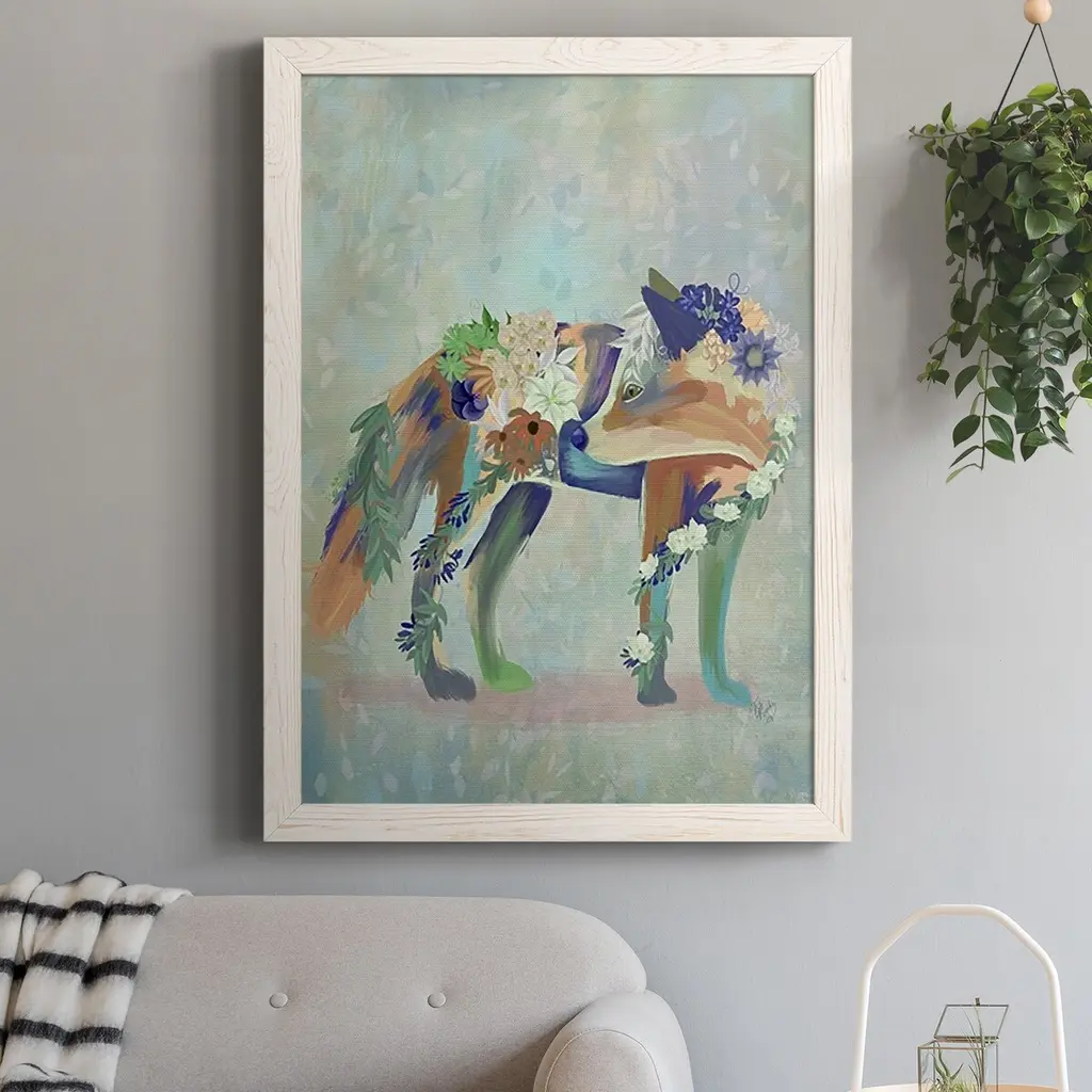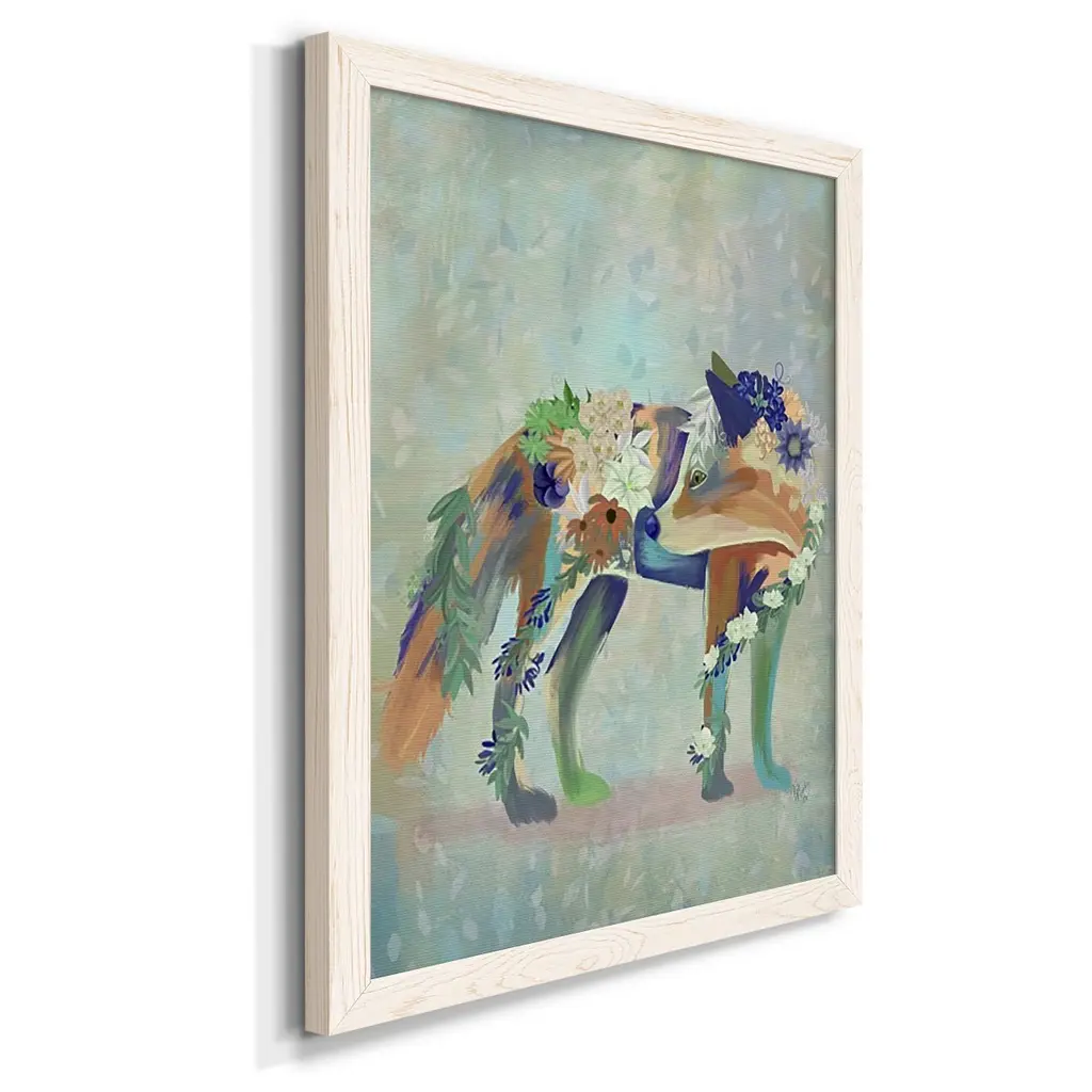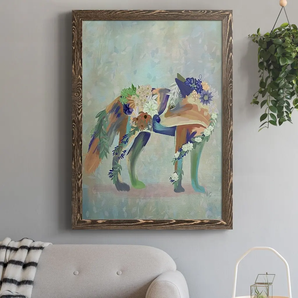 Fantastic Florals Fox, Standing-Premium Framed Canvas - Ready To Hang - 27.5x37.5 - Maple