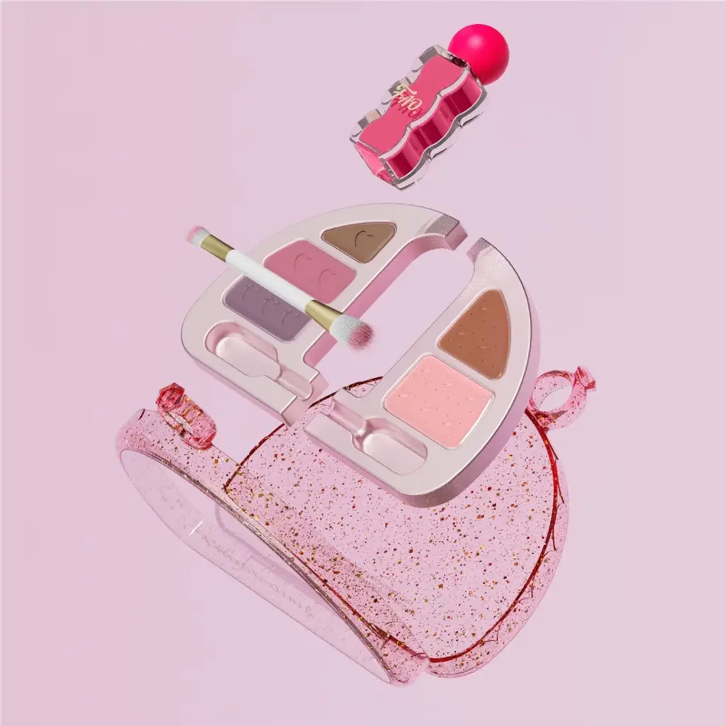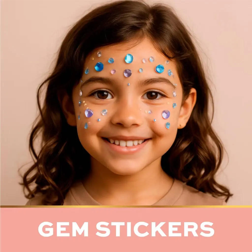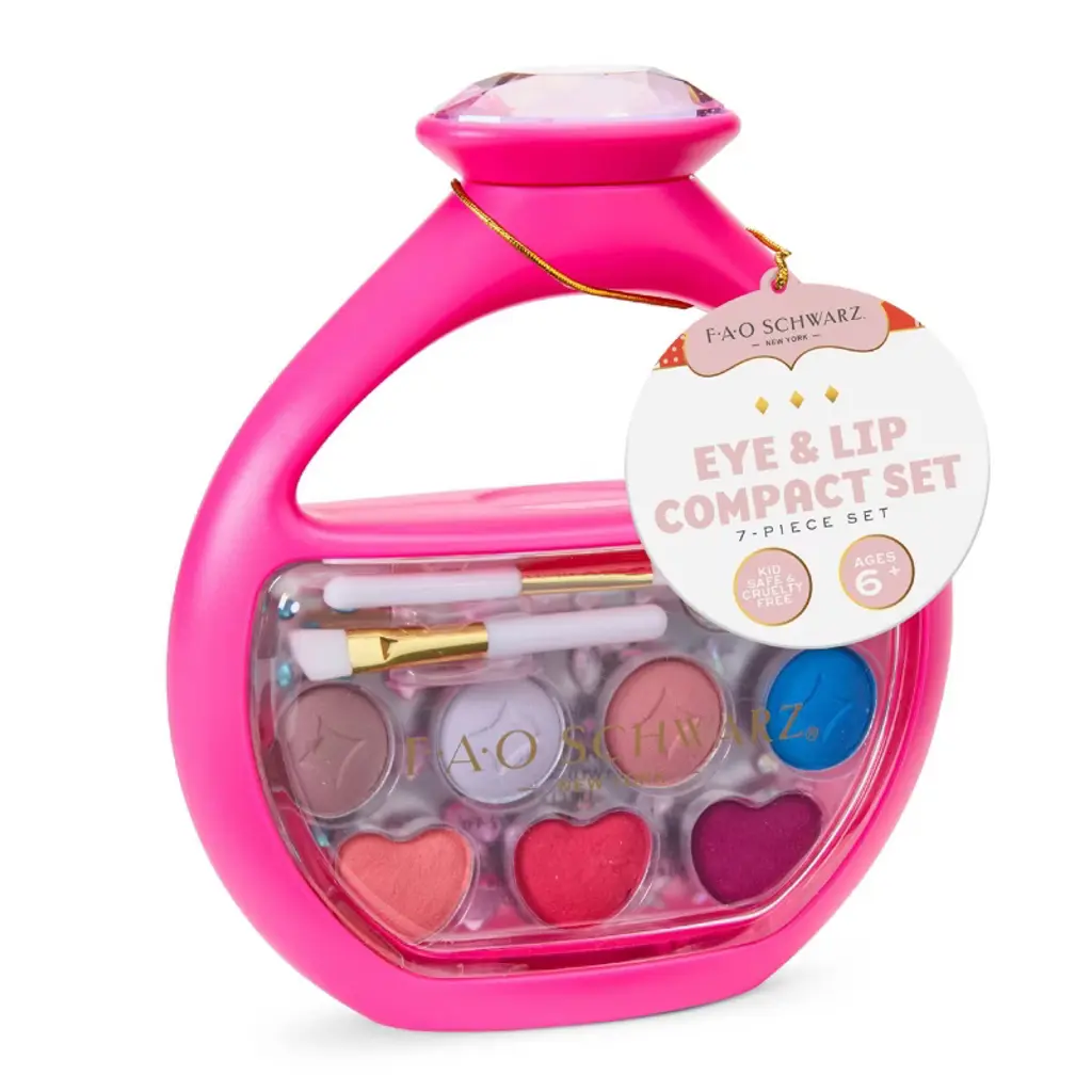 Get ready for colorful creativity with the FAO Schwarz® Eye & Lip Compact 7-Piece Set. This sparkling case is filled with everything kids need to play with makeup, including a mix of bright and shimmery eyeshadows, playful lip colors, and a sheet of gem stickers for extra dazzle. The compact’s built-in mirror and included brushes make it easy to try out different looks, whether it’s bold, glam, or just-for-fun styles. Perfectly sized for small hands, the set is both portable and display-worthy, adding a touch of sparkle to any vanity or play area. Made with kid-safe, cruelty-free formulas, this compact is a fun and imaginative way to explore beauty play while encouraging creativity and confidence. A wonderful gift for ages 6 and up.