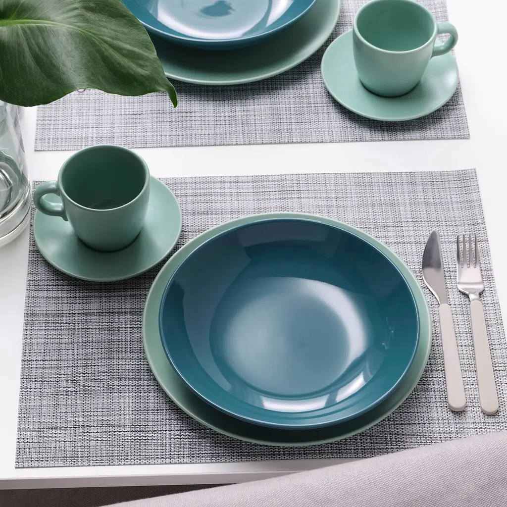FÄRGKLAR Deep plate/bowl - glossy dark turquoise 9 ". The deep plate’s simple, functional design is easy to coordinate with other colors, shapes or different types of glazing – and makes FÄRGKLAR the perfect base for many occasions. This deep plate holds 33.8 oz.