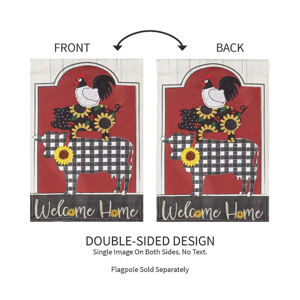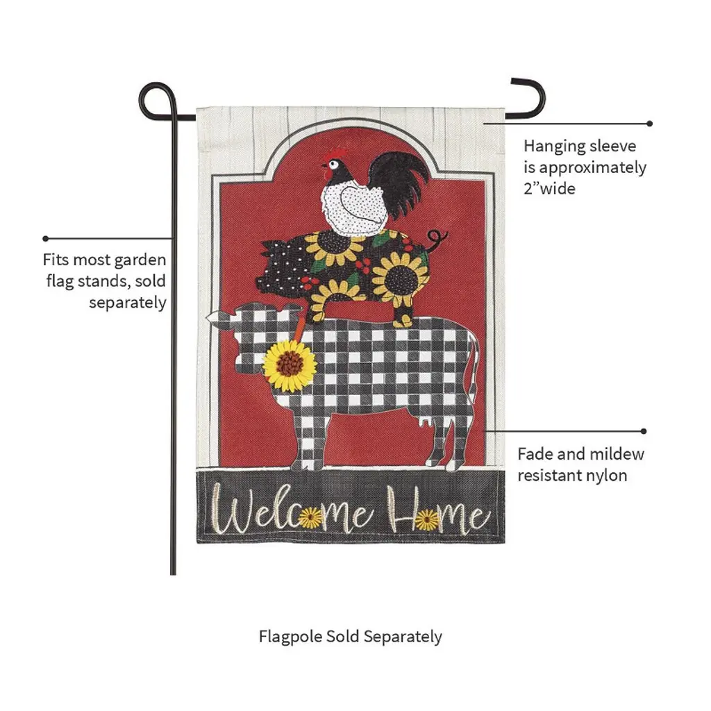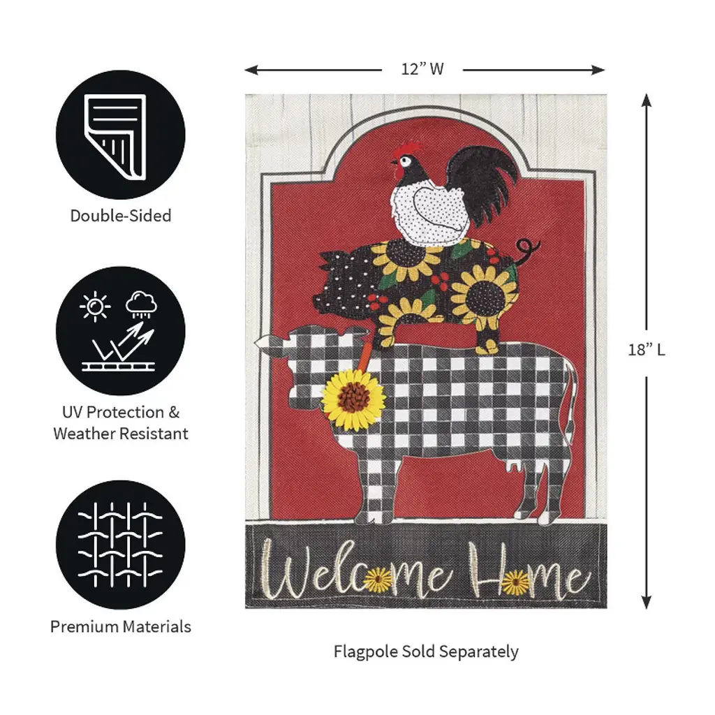 This Farm Friends Burlap Garden Flag will make a cheerful statement! Crafted of medium-weight, soft polyester burlap fabric, this flag has the look and feel of real burlap.