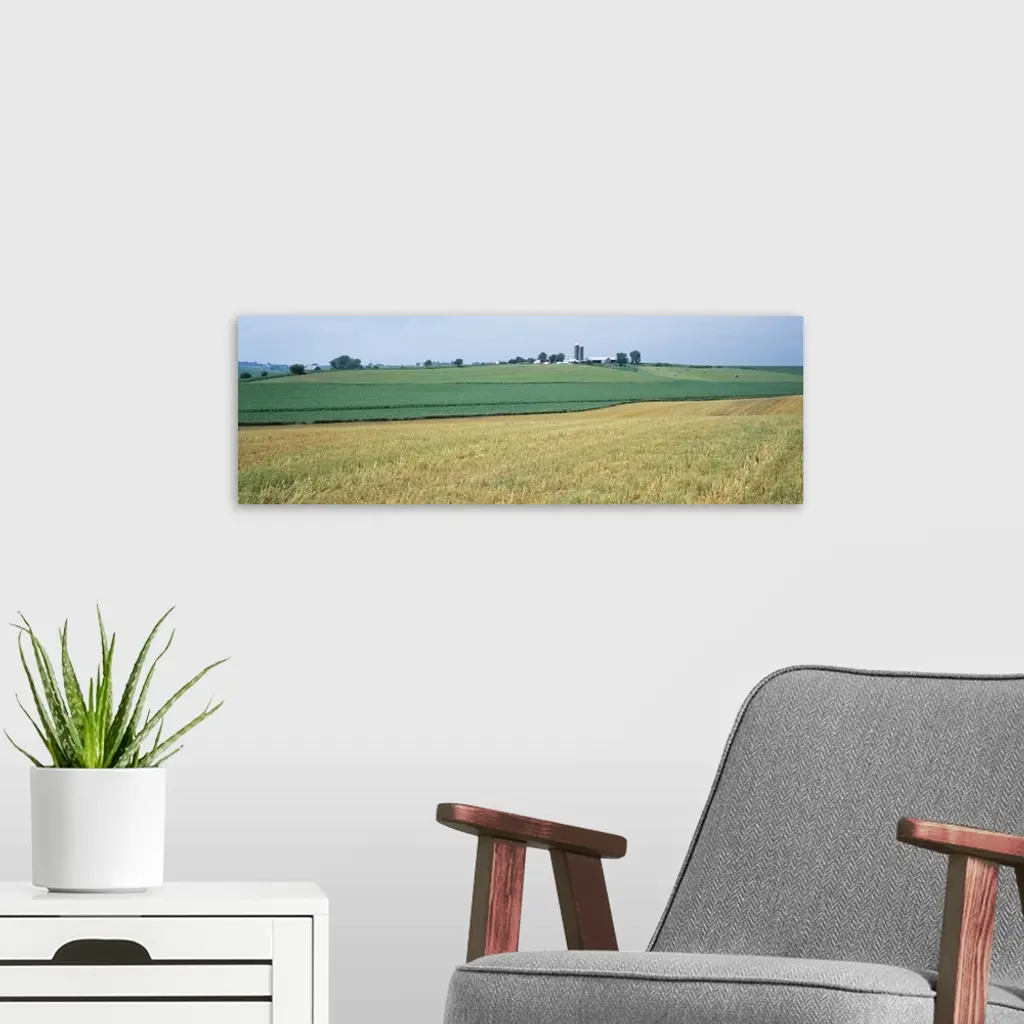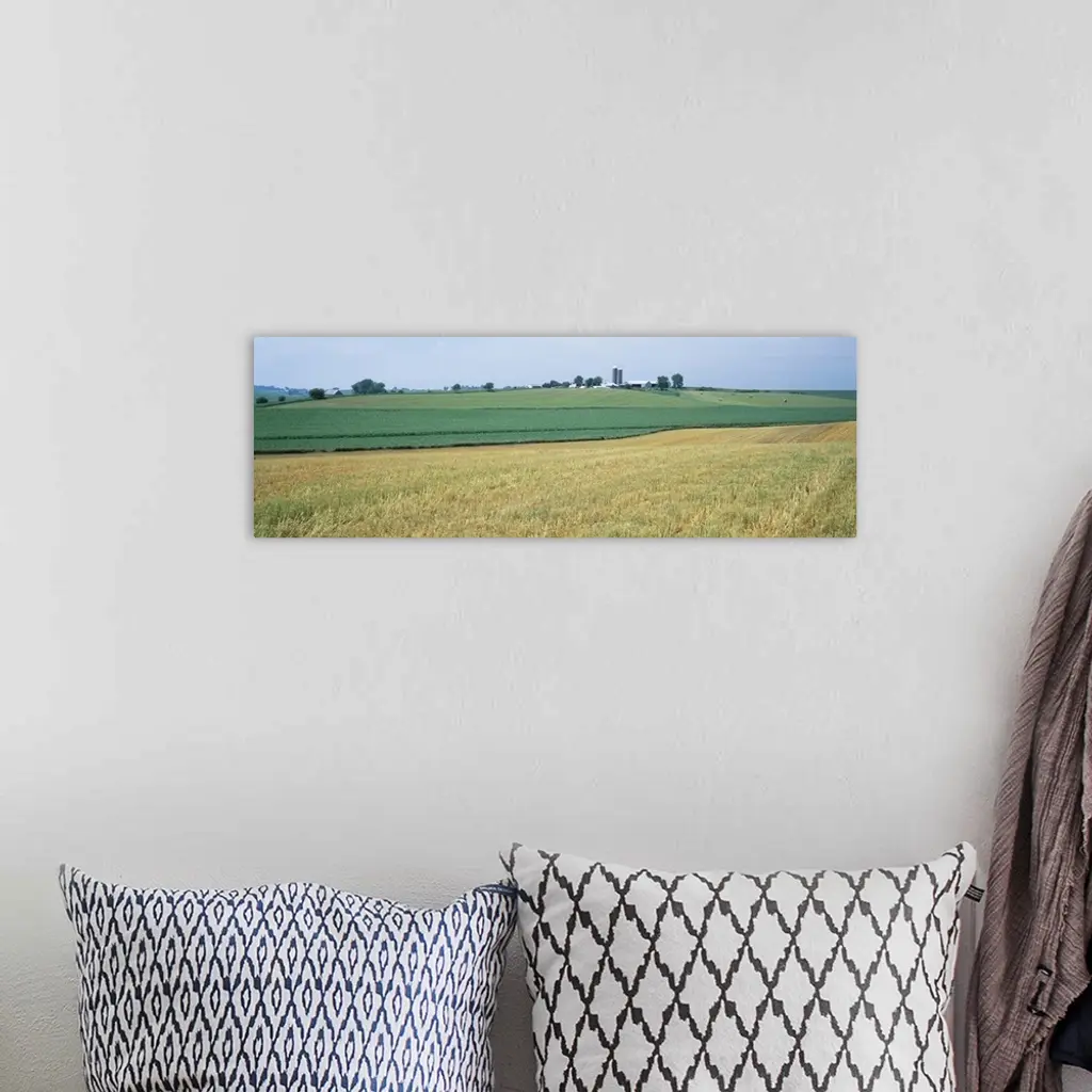 Farm silos in an oat field, Iowa wall art for home and office decor. Discover canvas art prints, photos, mural, big canvas art and framed wall art in GreatBigCanvas.com's varied collections.