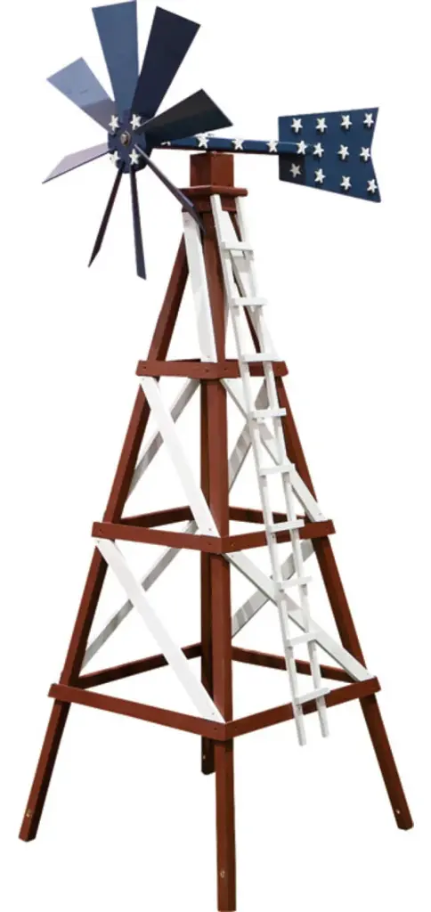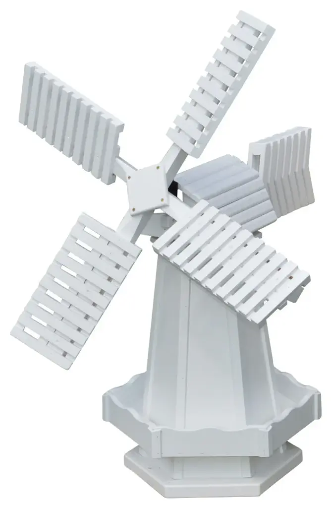 Create a gorgeous center piece in any garden or on any porch with this gorgeous Amish-made Windmill! Our wooden windmills are constructed of durable exterior plywood with three coats of polyurethane to protect your windmill.Amish made in the USA High quality materials for durability Digital colors may vary slightly from actual product color