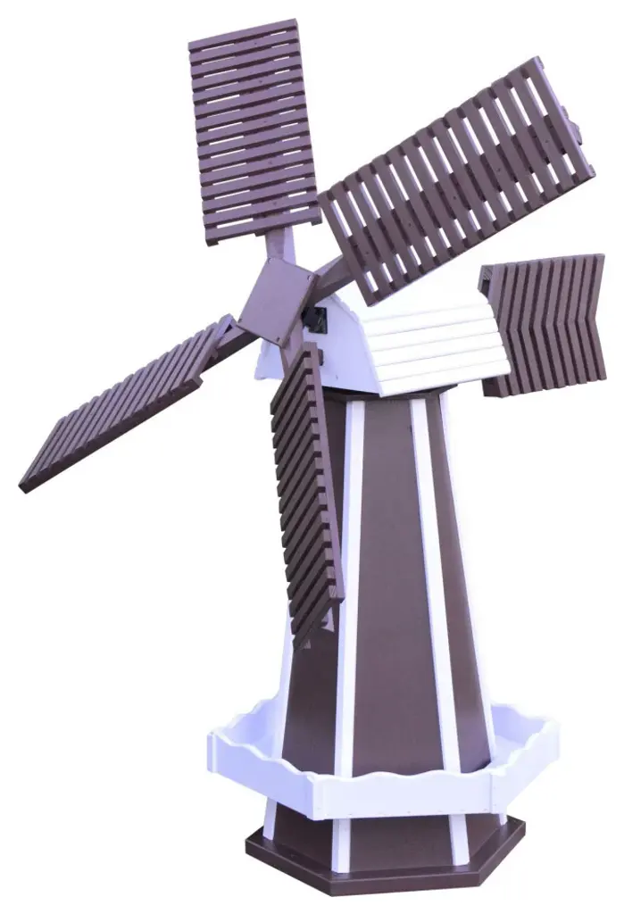 Create a gorgeous center piece in any garden or on any porch with this gorgeous Amish-made Windmill! Our wooden windmills are constructed of durable exterior plywood with three coats of polyurethane to protect your windmill.Amish made in the USA High quality materials for durability Digital colors may vary slightly from actual product color