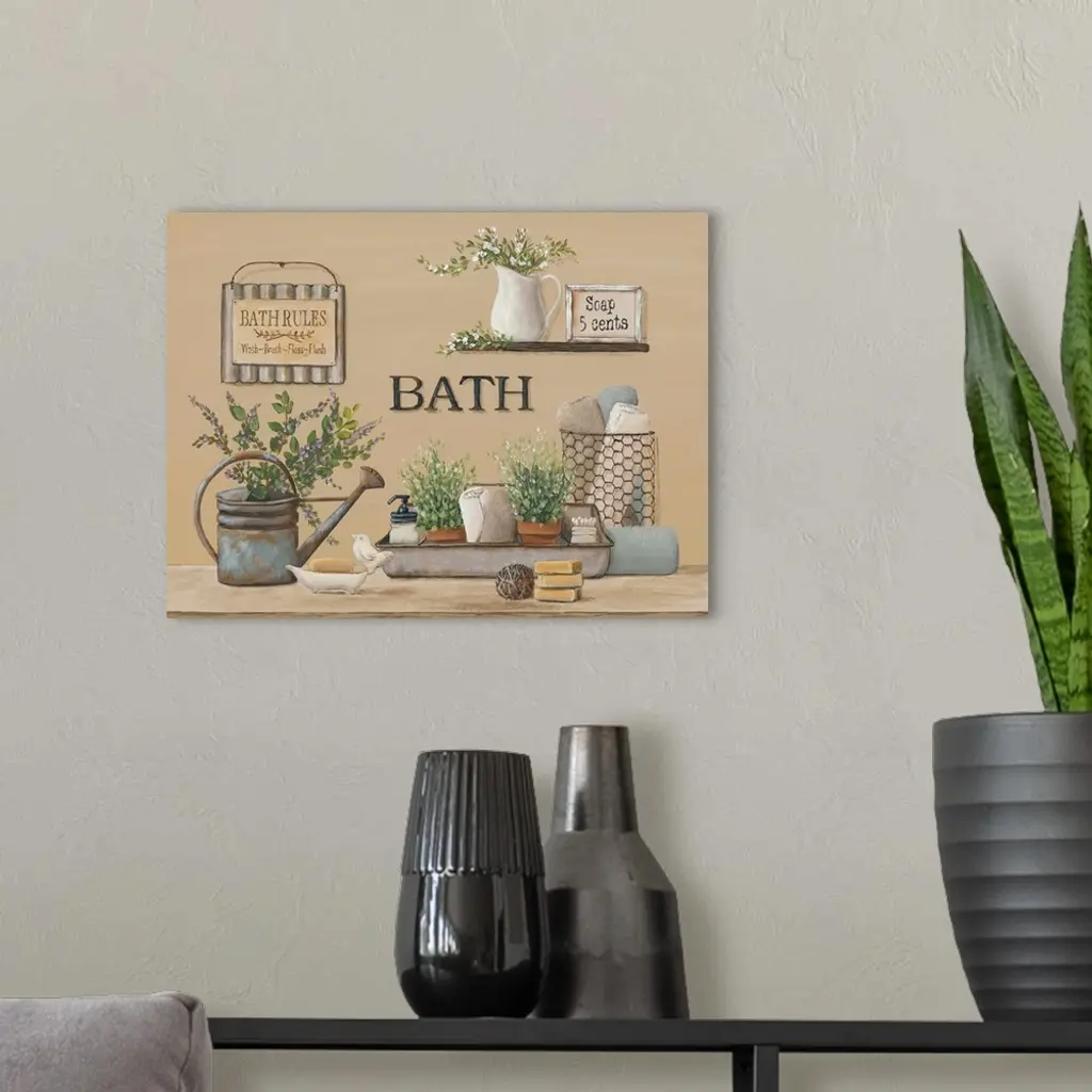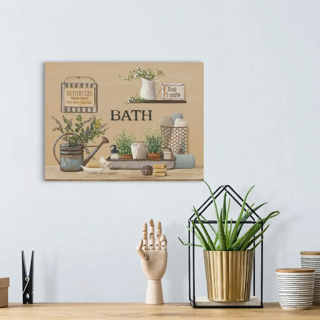 Farmhouse Bath II wall art for home and office decor. Discover canvas art prints, photos, mural, big canvas art and framed wall art in GreatBigCanvas.com's varied collections.
