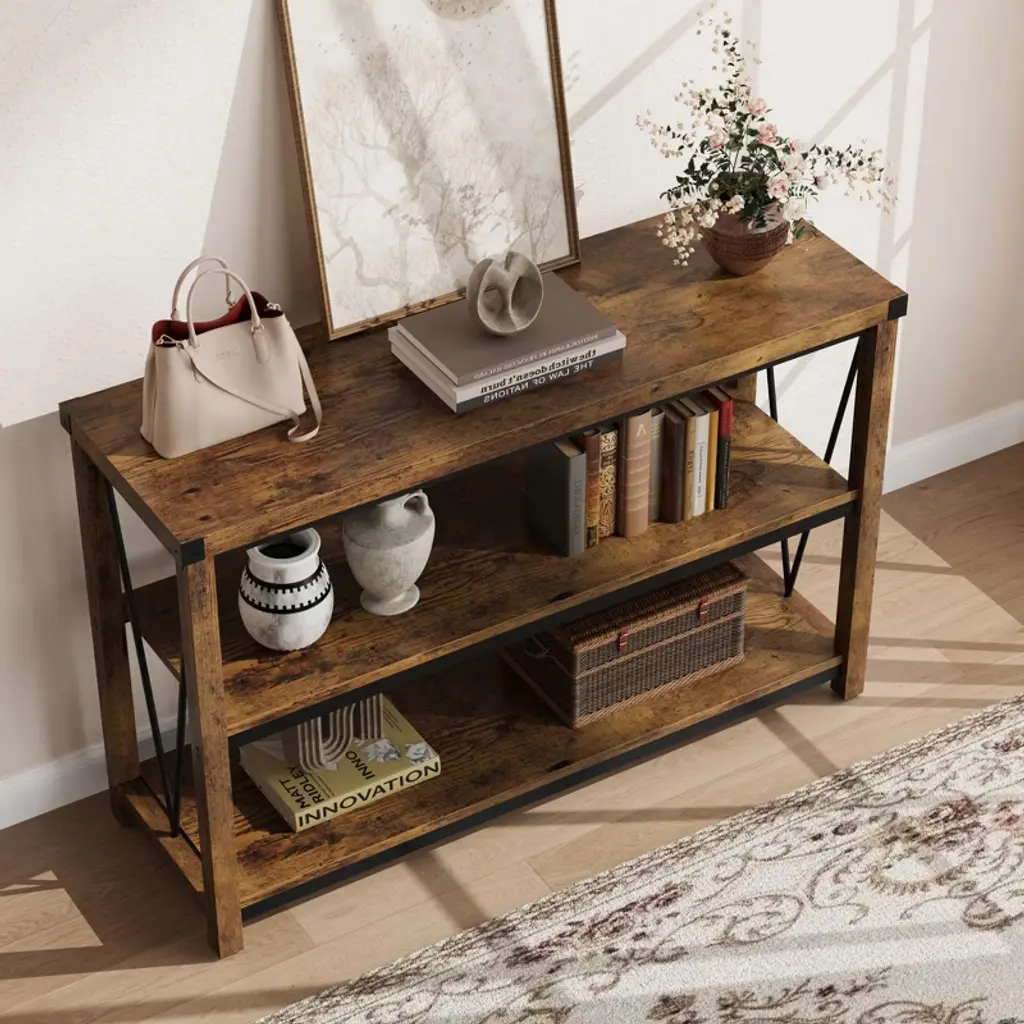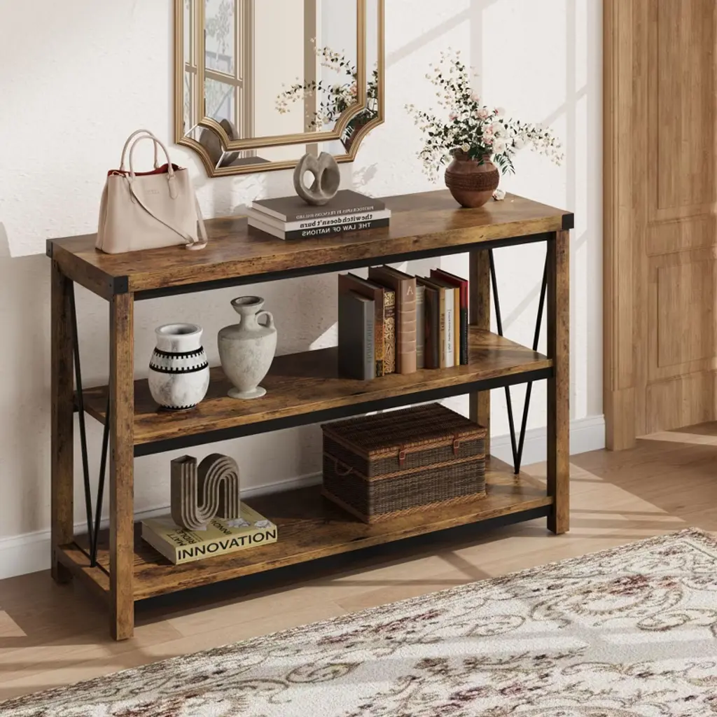 Farmhouse Entryway Table, 47 Inch Console Table With Storage, 3 Tier Wood Console Table For Living Room, Hallway Table For Foyer, Entryway, Sofa