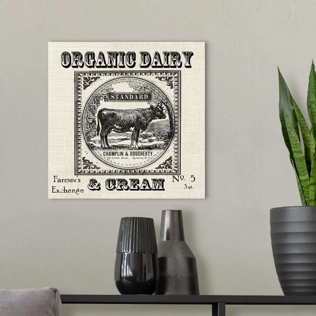 Farmhouse Grain Sack Label Cow wall art for home and office decor. Discover canvas art prints, photos, mural, big canvas art and framed wall art in GreatBigCanvas.com's varied collections.